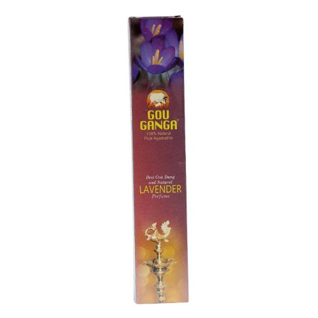 Gou Ganga Puja Agarbatti Incense Sticks are crafted from pure cow dung, herbs, and natural lavender scent. The incense sticks create a serene atmosphere for your prayers by releasing oxygen and keeping mosquitoes away. Each stick provides a soothing aroma of lavender, enhancing your meditation and prayer experience.