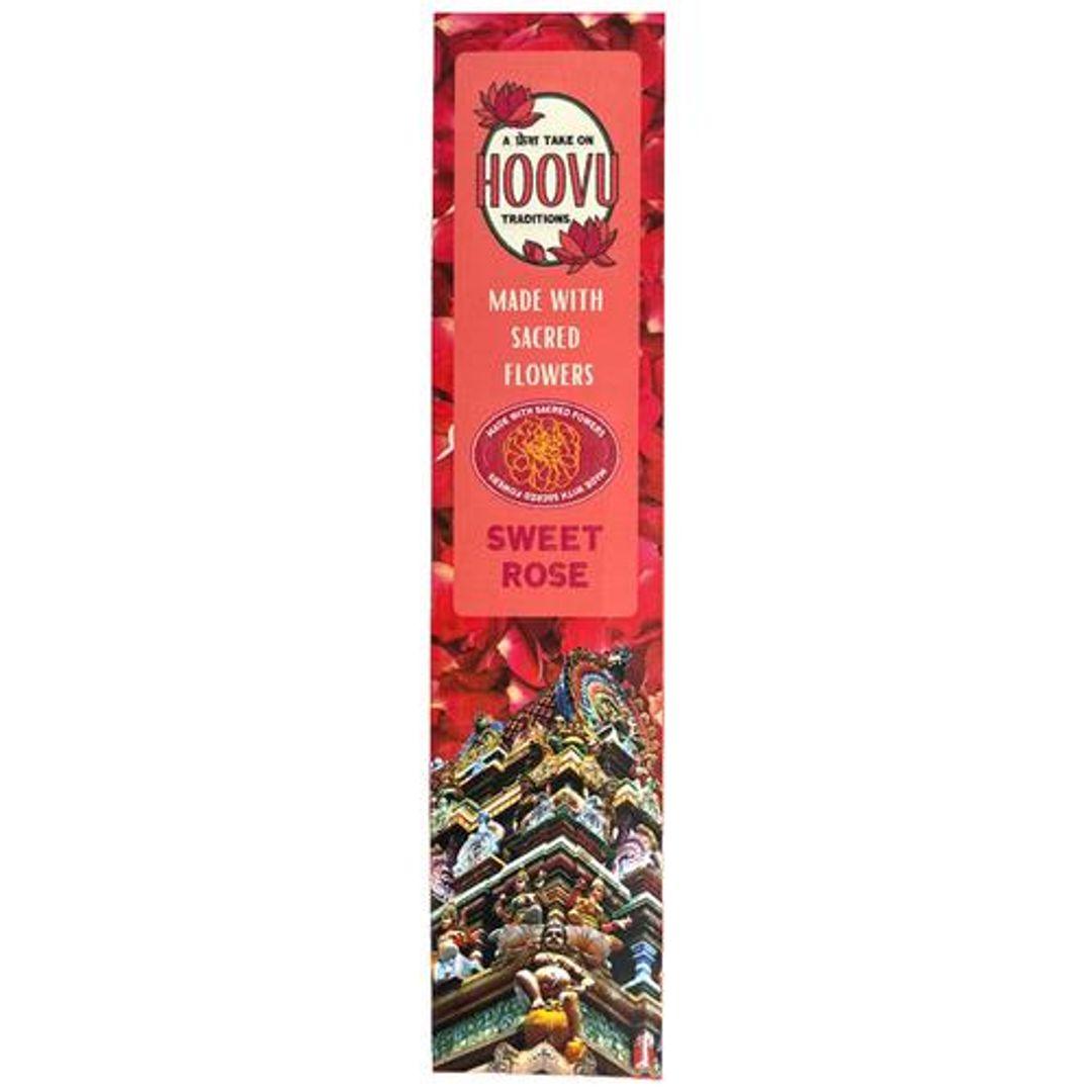 About the Product: Hoovu Sweet Rose Agarbathi is crafted from high-quality, natural ingredients. In India, incense sticks, or agarbathi, are traditionally used to spread positivity and create a peaceful atmosphere. The rich fragrance features exotic woody and musky notes for a soothing experience. These sticks are meticulously rolled or molded around bamboo sticks, providing a delightful and aromatic environment.