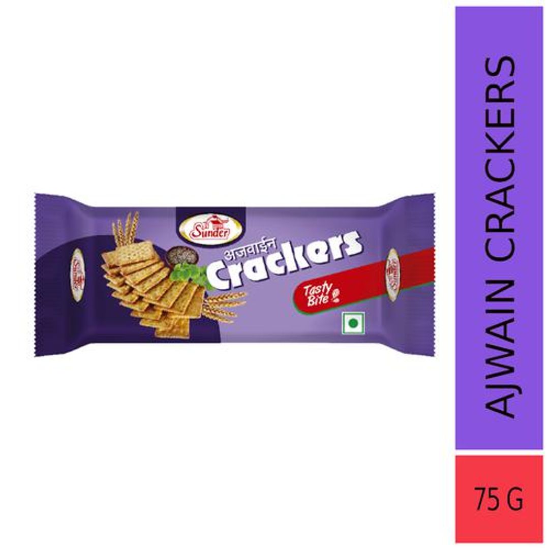 Sunder Ajwain Crackers are delicious wheat and ajwain seeds crackers. They are made with high-quality ingredients. It is enriched with a great taste of wheat and ajwain seeds. These biscuits make a perfect snack whenever you feel hungry. It is salty, sweet and crispy and healthy biscuit. It is a perfect healthy treat for your body. Now savour the taste of these whole wheat biscuits with your morning or evening tea or coffee. It does not contain any added flavouring or preservatives.