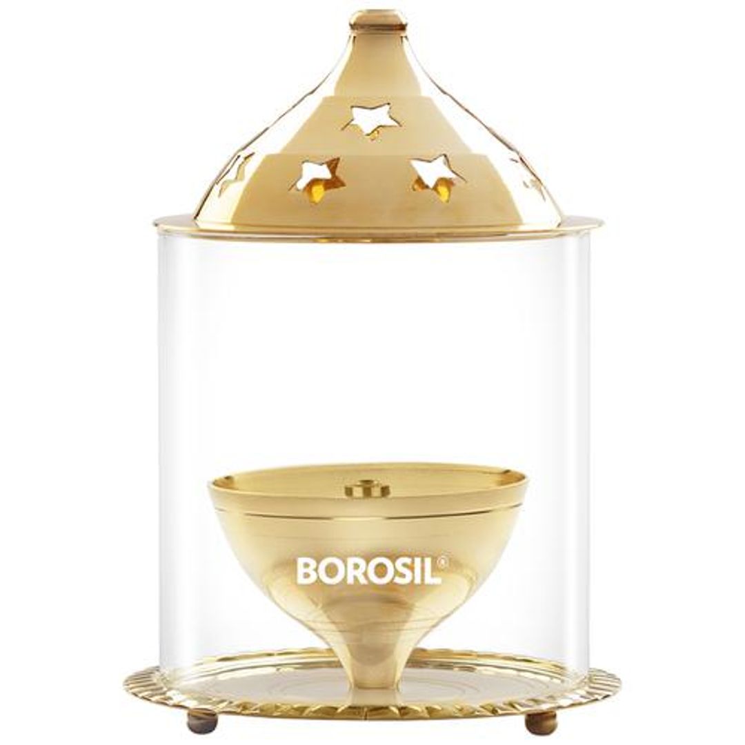 Akhand Diya - With Borosilicate Glass, Brass, Medium, Unique Design, For Pooja Purpose