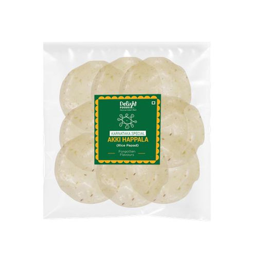 Akki Happala or Rice flour papad is a typical South Indian accompaniment that needs to be deep-fried. Akki Happala is consumed as an accompaniment with rice sambar/ rasam and many other southern delicacies. Our Papads do not contain any preservatives or artificial colours & flavours. Our rice papads are very hygienic & traditionally prepared to ensure authentic flavour & texture. Our rice papads become fluffed up thin wafer upon frying, which adds a serious crunch & spicy twist to your meal. Add this papad to your pantry to explore the true flavours of Southern India.