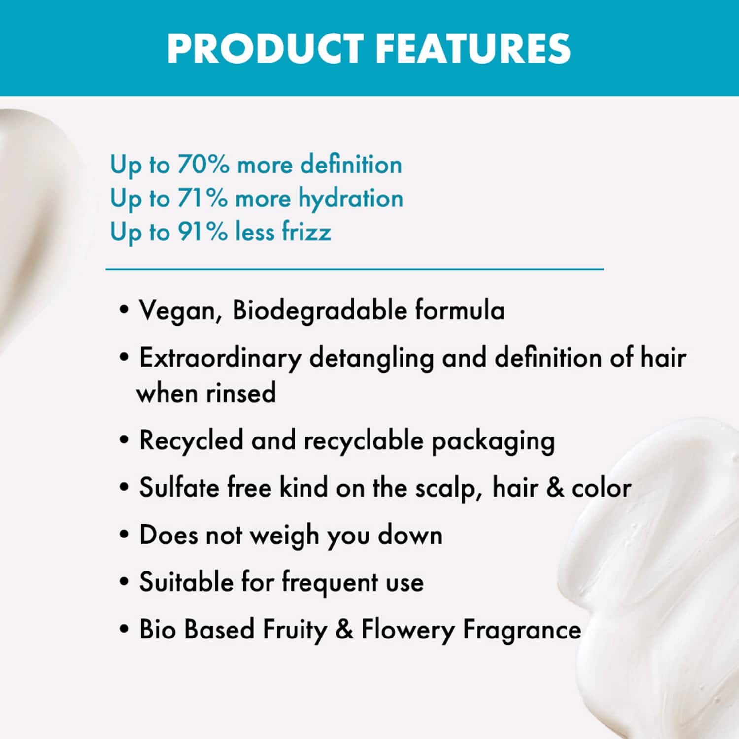 Key Features & Benefits:Enriched with shea butter for intense moisturization and reduction of frizzInfused with manketti oil that reduces dryness and adds weight to your curlsContains flaxseed extract that protects curly hair and prolongs their shineVegan formulation that has no toxic chemicals and is safe for hair