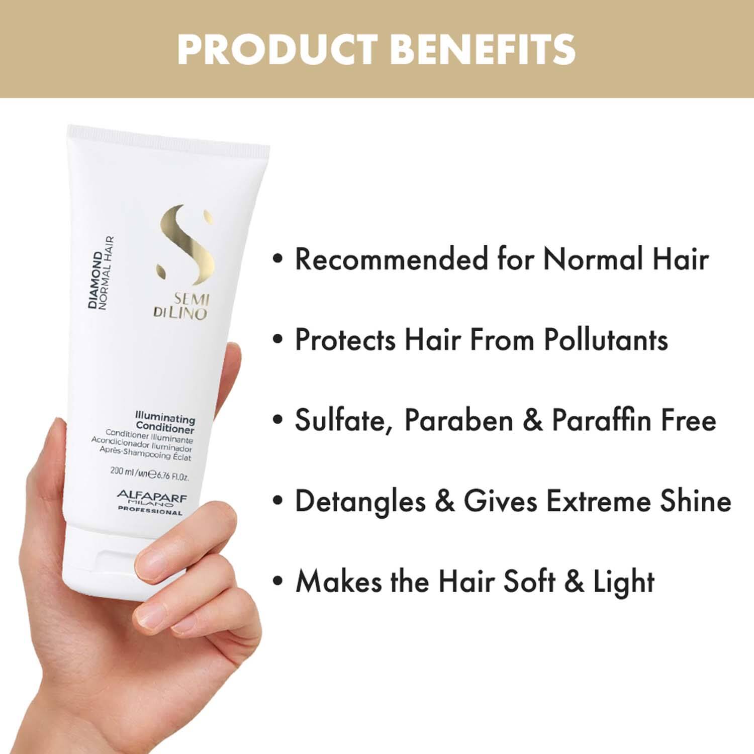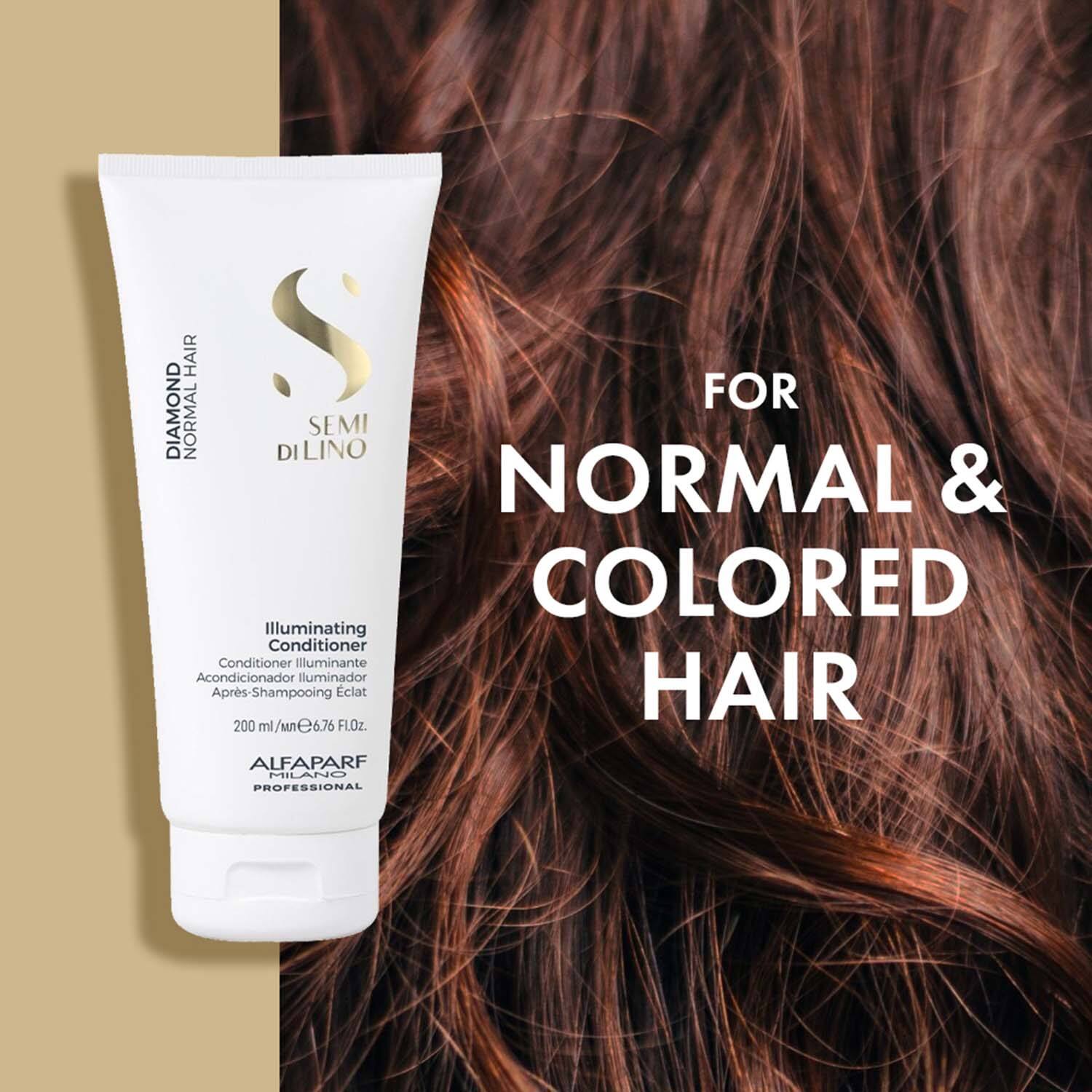 Unlock gorgeous hair with the ALFAPARF MILANO Diamond Illuminating Conditioner - Splitend Repair, Shine, Wavy Hair (200 ml). This color-protect conditioner is formulated with flaxseed oil that protects and nourishes straight, wavy, or colored hair. Enriched with shea butter, the ALFAPARF MILANO conditioner deeply hydrates the hair to reduce frizz. Plus, this vegan conditioner uses a gentle formulation that is safe for the hair.
