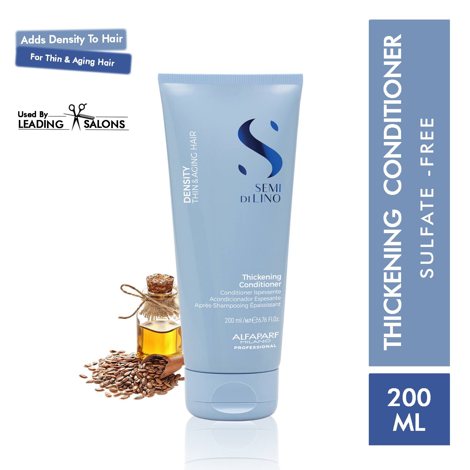 Unveil luscious locks with the ALFAPARF MILANO Hair Thickening Conditioner (200 ml). This hair-thickening conditioner is designed with a filler complex technology that thickens and plumps hair for more volume. The ALFAPARF MILANO conditioner is formulated with a UV block design that prevents hair from external stressors and protects colored hair. Infused with linseed oil, this hydrating conditioner nourishes and softens the hair for luxurious, shiny hair.