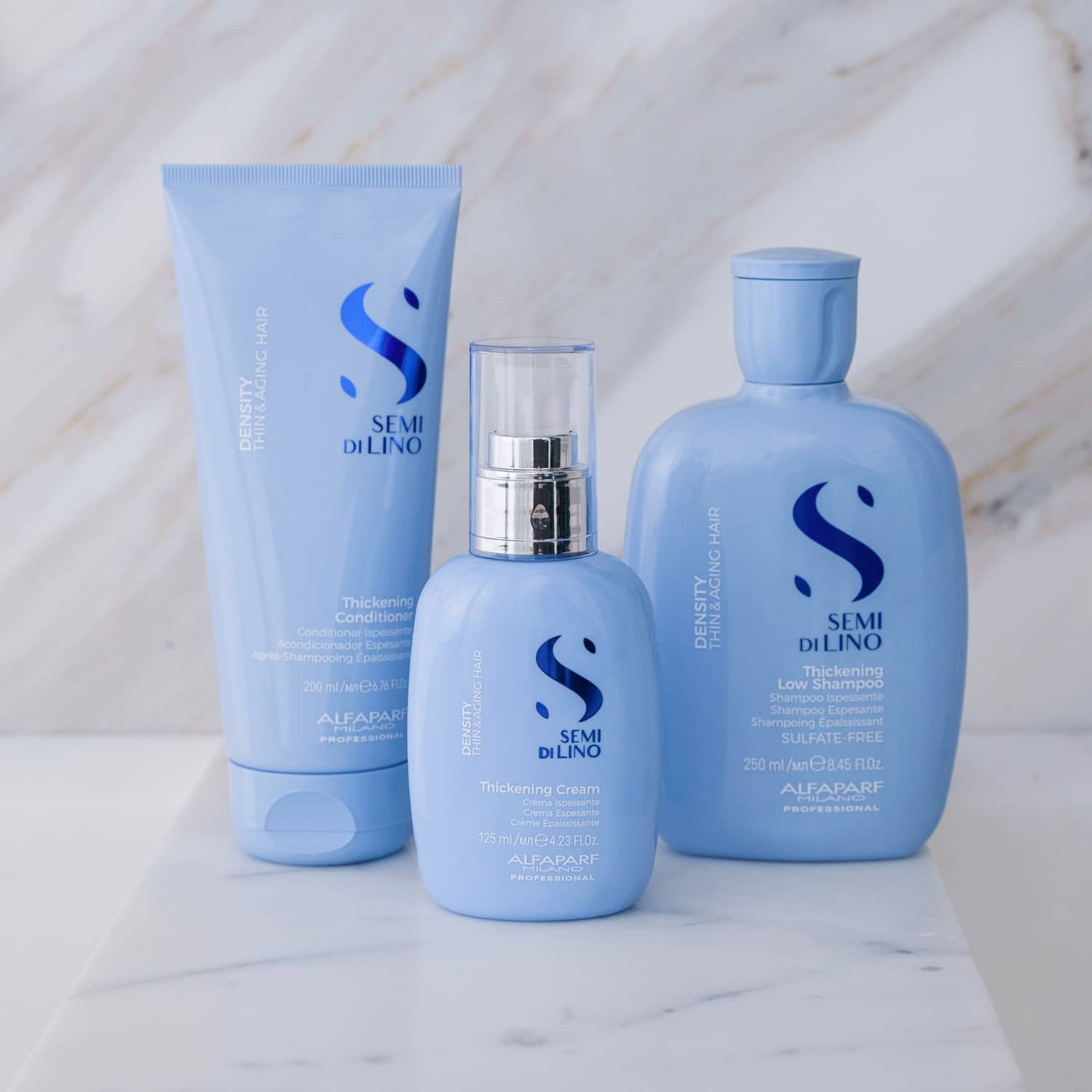 Get instant voluptuous hair with the ALFAPARF MILANO Hair Thickening Shampoo (250 ml). This hair-thickening shampoo is designed with a filler complex technology that thickens and plumps hair for more volume. The ALFAPARF MILANO shampoo is formulated with a UV block design that prevents hair from external stressors and protects colored hair. Infused with linseed oil, this hydrating shampoo nourishes and softens the hair for luxurious, shiny hair.
