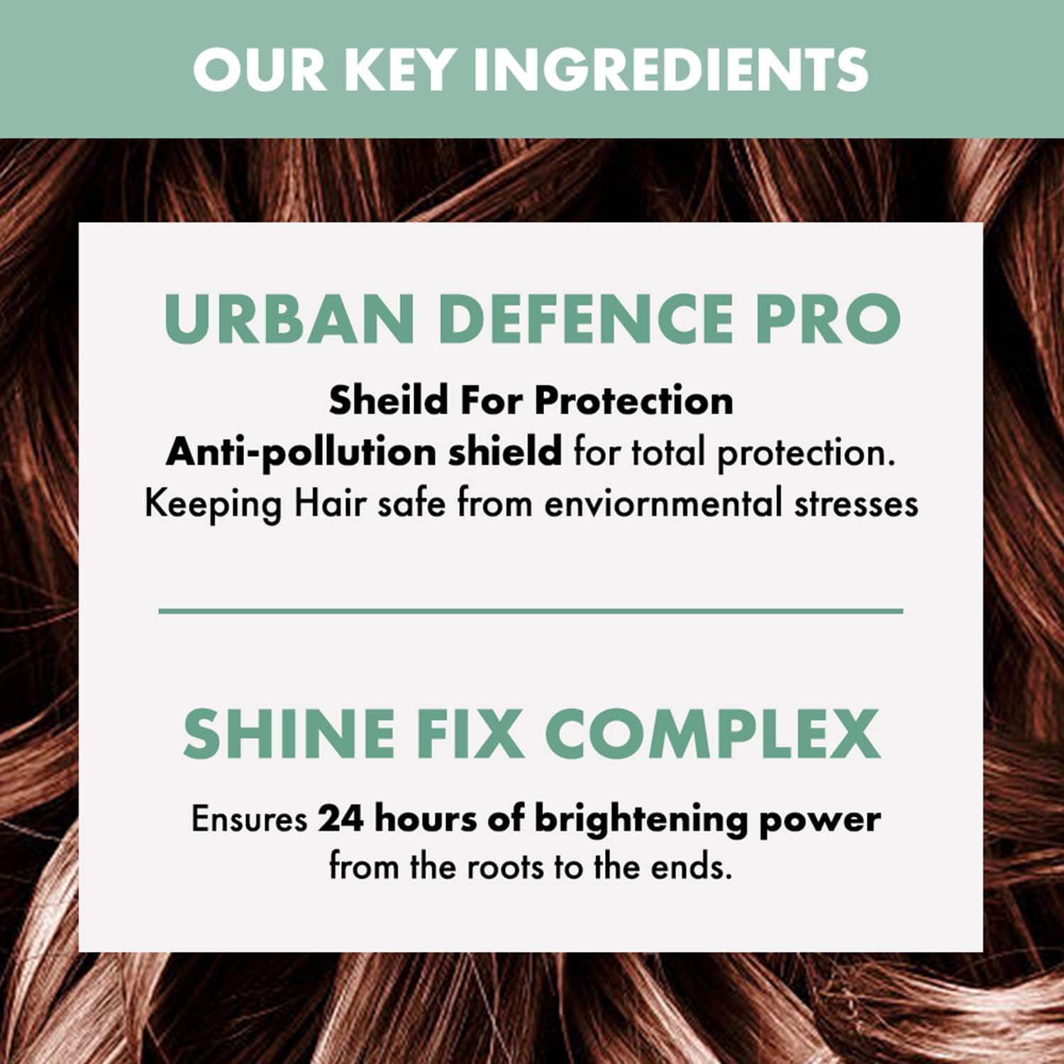 Key Ingredients:Urban defense pro: Creates anti-pollution shield for total protectionShine fix complex: Keeps the hair shinyColor fix complex: Prolongs the vibrancy of hair colorPure-set complex: Fights scalp peelingSebonorm complex: Reduces oil on the scalpMicrobiotic system: Helps maintain scalp balance