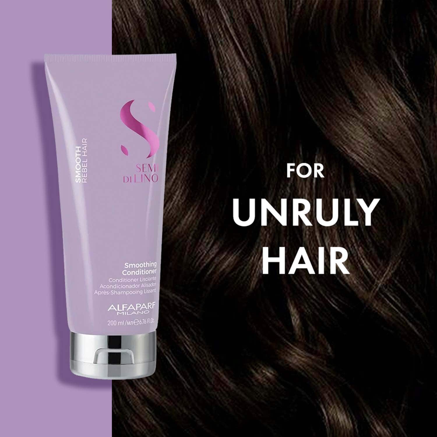 Get smooth, shiny hair with the ALFAPARF MILANO Smoothing Low Conditioner - Dry, Frizzy Hair, Smooth, Shiny, Rebel Hair (250 ml). This straight hair conditioner is formulated with flaxseed extract that protects and nourishes hair. Enriched with linseed oil, the ALFAPARF MILANO conditioner deeply hydrates dry hair to reduce frizz and improve manageability. Plus, this sun-protection conditioner prevents sun and pollution damage for shiny, healthy hair.
