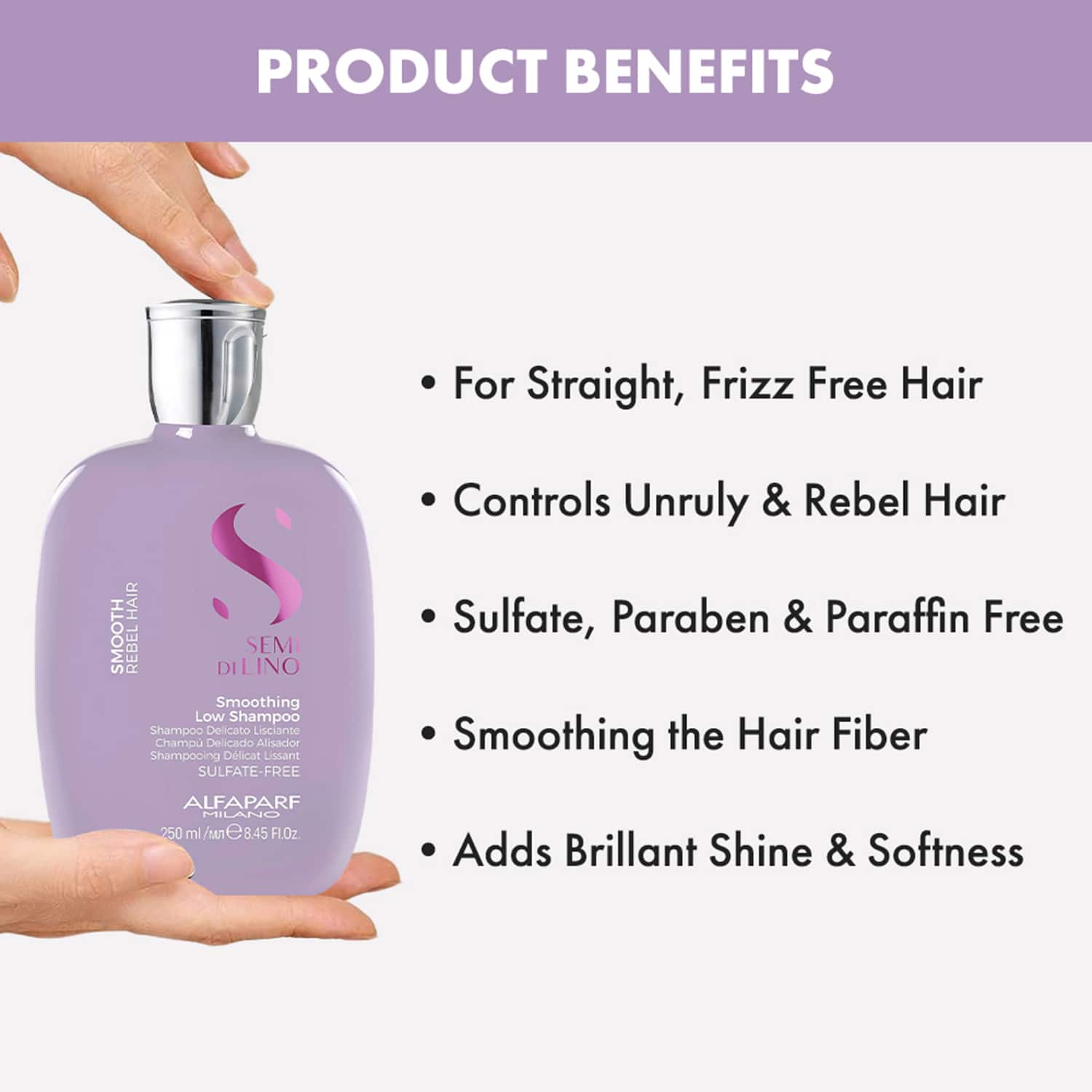 Alfaparf Milano Smoothing Low Shampoo - Dry, Frizzy Hair, Smooth, Shiny, Rebel Hair (250 ml)