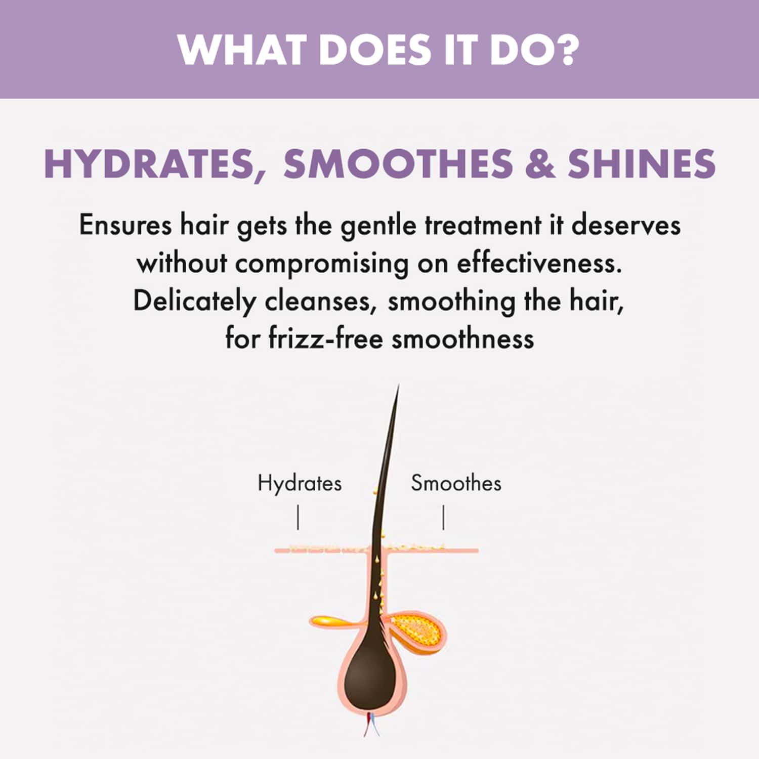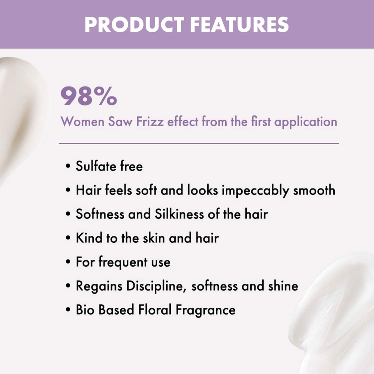 Key Features & Benefits:Cleanses the scalp and smoothens frizzy hairSoftens and moisturizes the hairFormulated to protect against heat and humidityFree from paraffin, mineral oil, and sulfates for safe use