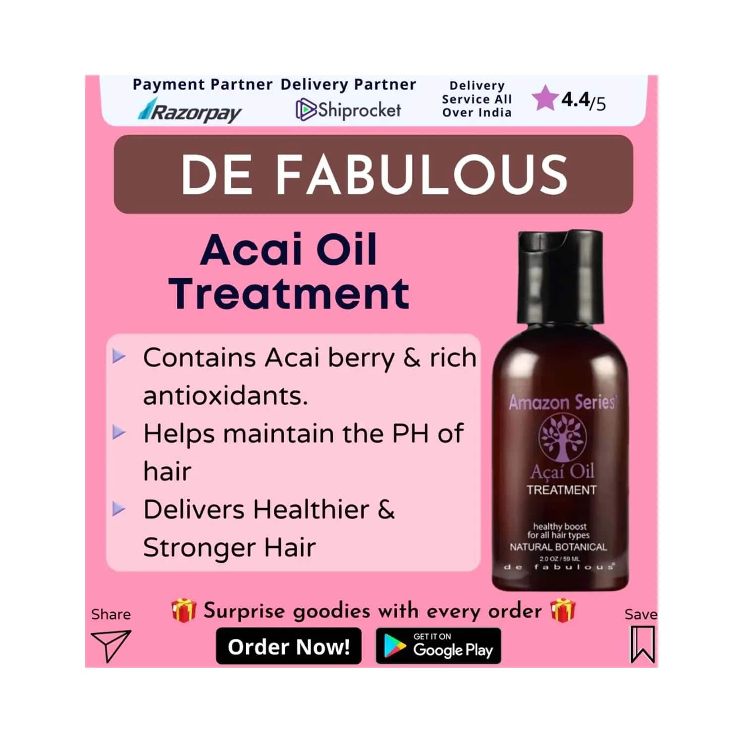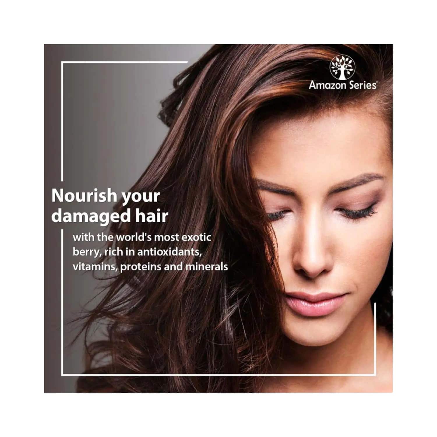 Fortify your hair with the Amazon Series Acai Oil Treatment (59ml). This nourishing hair oil contains acai berry extract and natural botanical extracts to hydrate and reduce split ends and frizziness. Also, the Amazon Series hair oil is free from harmful chemicals for risk-free use.Key Features & Benefits:Conditioning hair oil is infused with acai berry extract to nourish the scalp, soften the hair, and safeguard it from external aggressorsContains antioxidants to restore and revitalize damaged, porous hairLightweight formula feels comfortable on the hairCruelty-free and does not contain paraben and sulfate for safe useKey Ingredients:Brazil nut seed: Promotes hair growthBotanical extracts, tucuma butter, acai berries: Moisturize and repair dry, chemically stressed hairHow to Use:To apply hair oil, start by rubbing a small amount of oil between your hands. Then, gently apply it to your hair and scalp using circular movements. Wait for at least one hour before bath or overnight. It is recommended to use 2-3 a week for best results.About the Brand:Amazon Series is an Indian hair care brand offering natural solutions to restore hair balance. The brand spreads awareness about the Amazon rainforest through its uniquely-curated products for healthy hair. Each product it provides is enriched with botanical extracts from unique plants and fruits from the Amazon rainforest. Amazon Series is committed to tackling the growing natural botanical demand and challenges the world to learn more about the benefits of natural vegetation.Check out more Amazon Series Hair Oil options here, or browse through tokocart's full range of Hair Oil from top global brands.You can also explore other products from the world of Amazon Series here on tokocart.