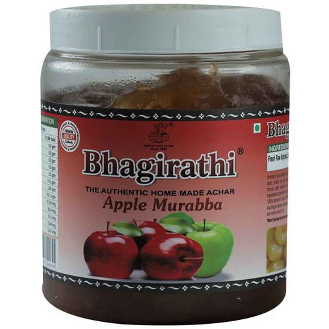 The Bhagirathi Apple Murabba is a great after-meal sweet that refreshes your palate and leaves you satisfied. This Apple Murabba is made from crisp and juicy apples that are naturally sweet and full of flavours. Apple murabba provides vitality to your skin. It helps reduce wrinkles and blemishes. It is also a good antioxidant, which fights off free radicals in the body and precludes skin ageing. Apple murabba can also stimulate collagen production and maintain skin health. Serve this Apple Murabba as a sweet dish to kids or even your guests and replace your unhealthy sweets and pastries. Explore the wide range of Bhagirathi homemade chutneys, pickles and murabba in a variety of flavours like Lemon pickles, Apple Murabba and more only on Big Basket.