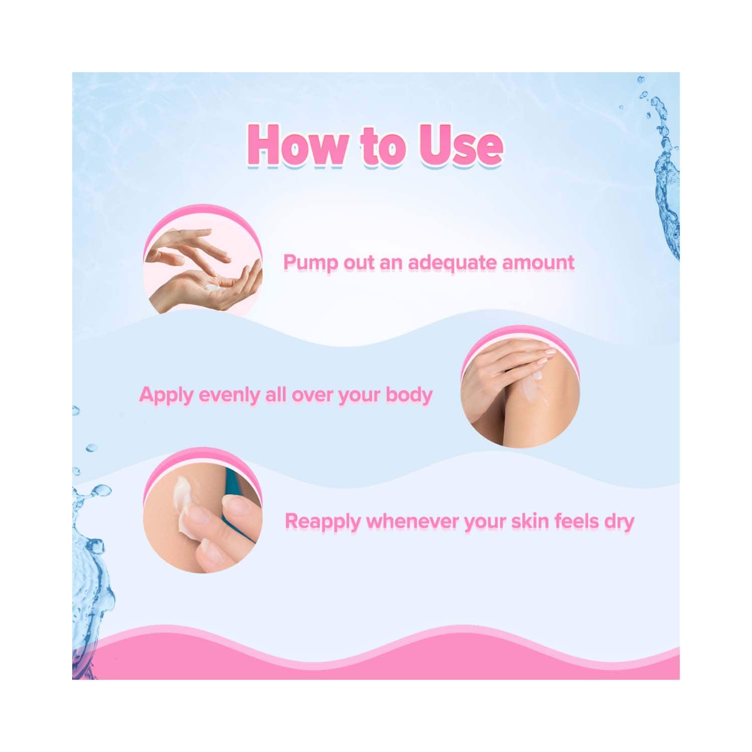 How to Use:Wash your skin. Then, take the required amount of the lotion and apply it to your body. Massage it onto your skin until complete absorption.