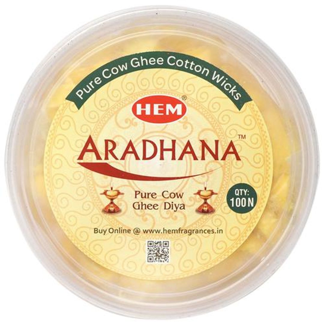 Hem Aradhana Pure Cow Ghee Diya is high-quality desi cow ghee. It is considered one of the purest forms of ghee. The wicks have a mild flavour which is a combination of camphor, sandalwood and jasmine. It is easy and safe to use. It has a higher heating temperature and is perfect for daily puja. The big size wicks burn for approximately 30mins. They are convenient and apt replacements for traditional ghee lamps.