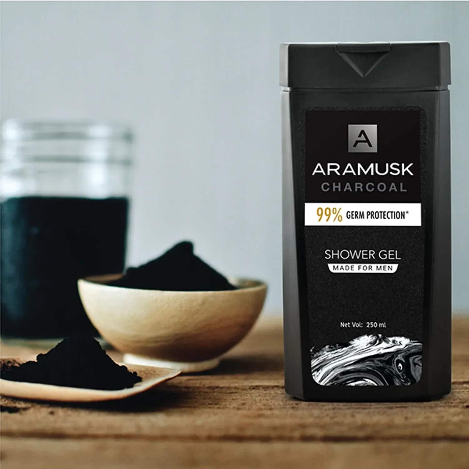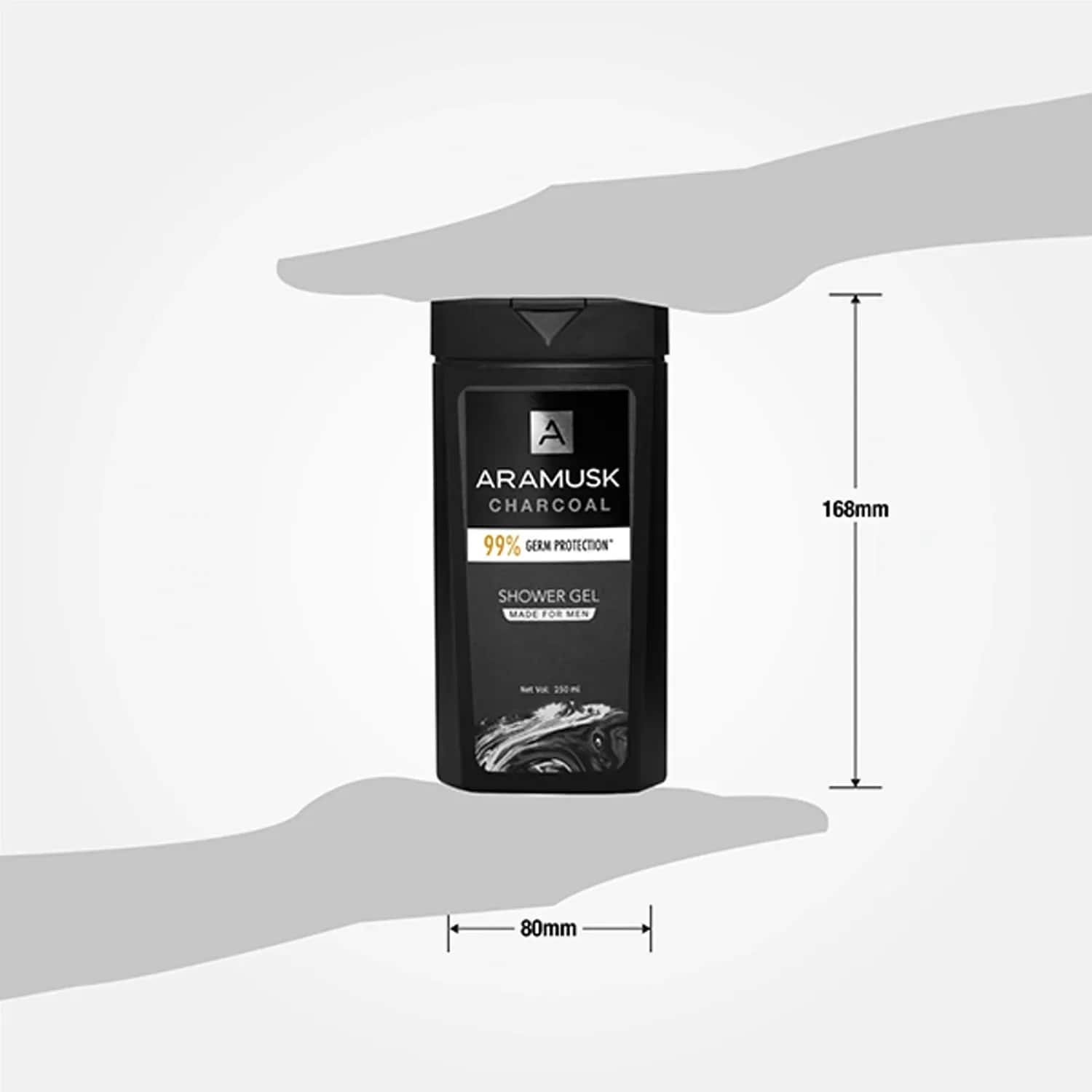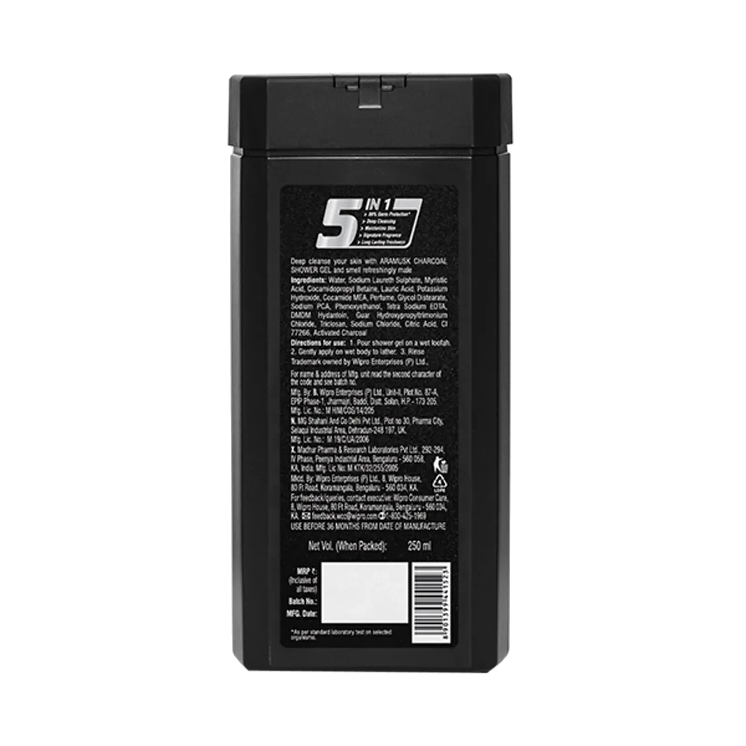 Feel clean and light with the Aramusk Charcoal Shower Gel - (250ml). This cleansing shower gel exfoliates the skin and gets rid of dirt and grime to promote soft, supple skin. The refreshing shower gel eliminates bad odour and exudes a woody fragrance. It also contains antibacterial actives to safeguard your skin from germs.Key Features & Benefits:Infused with activated charcoal to deeply cleanse the pores and promote even-toned skinContains antibacterial actives to provide 99% protection against germsGets rid of bad odour and exudes woody fragrance to refresh the sensesCan also be used as a facewashKey Ingredients:Activated charcoal: Deeply cleanses the pores and promotes even-toned skinHow to Use:Take a quarter-sized amount of shower gel in your palms. Apply it to wet skin and hair, and lather it up. Then wash it off with water and pat dry.All Ingredients:Water, Sodium Laureth Sulphate, Myristic Acid, Cocamidopropyl Betaine, Lauric Acid, Potassium Hydroxide, Cocamide Mea, Perfume, Glycol Distearate, Sodium Pca, Phenoxyethanol, Tetra Sodium Edta, Dmdm Hydantoin, Guar Hydroxypropyltrimonium Chloride, Triclosan, Sodium Chloride, Citric Acid, Cl77266About the Brand:Aramusk is a flagship men's personal care brand headed by Wipro Customer Care. Their products include shower gels, soaps, perfumes, deodorants, and much more. The brand develops premium personal care products that cater to men's personal grooming needs.
