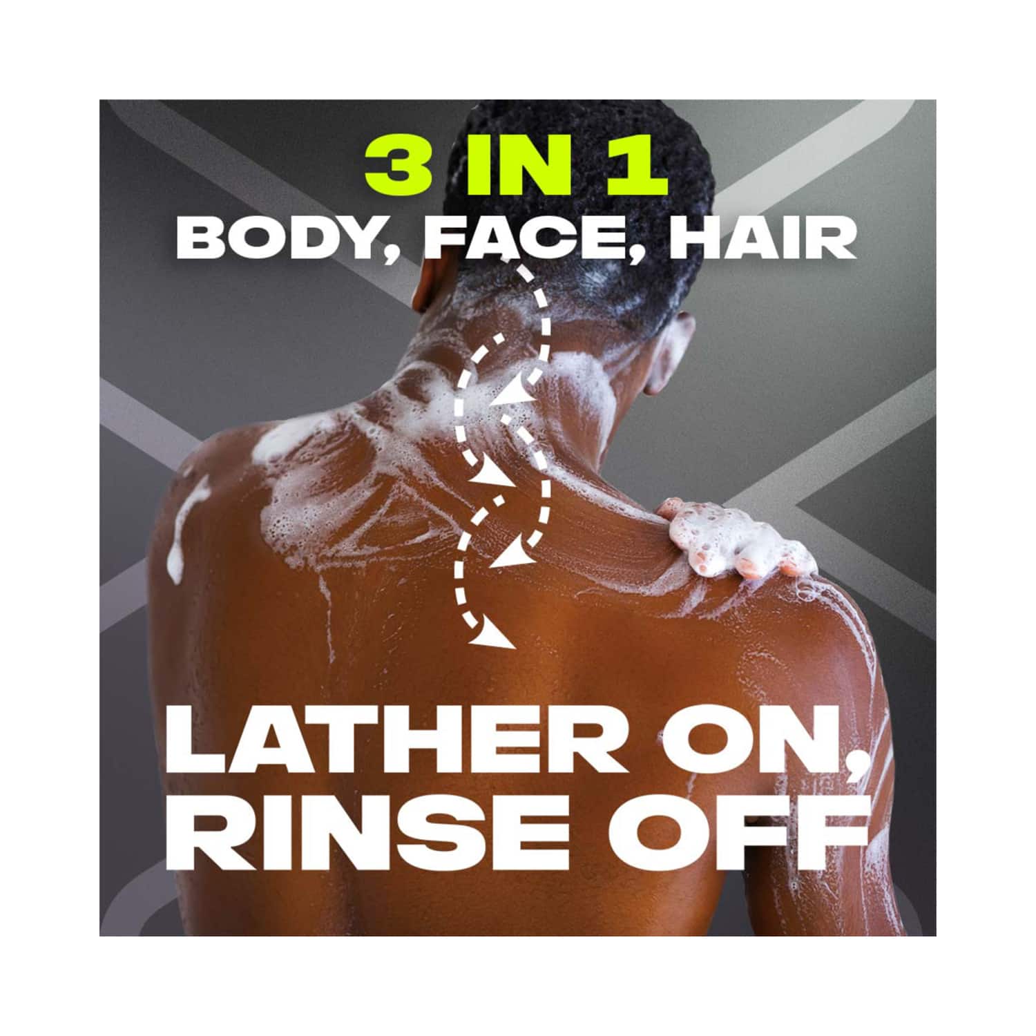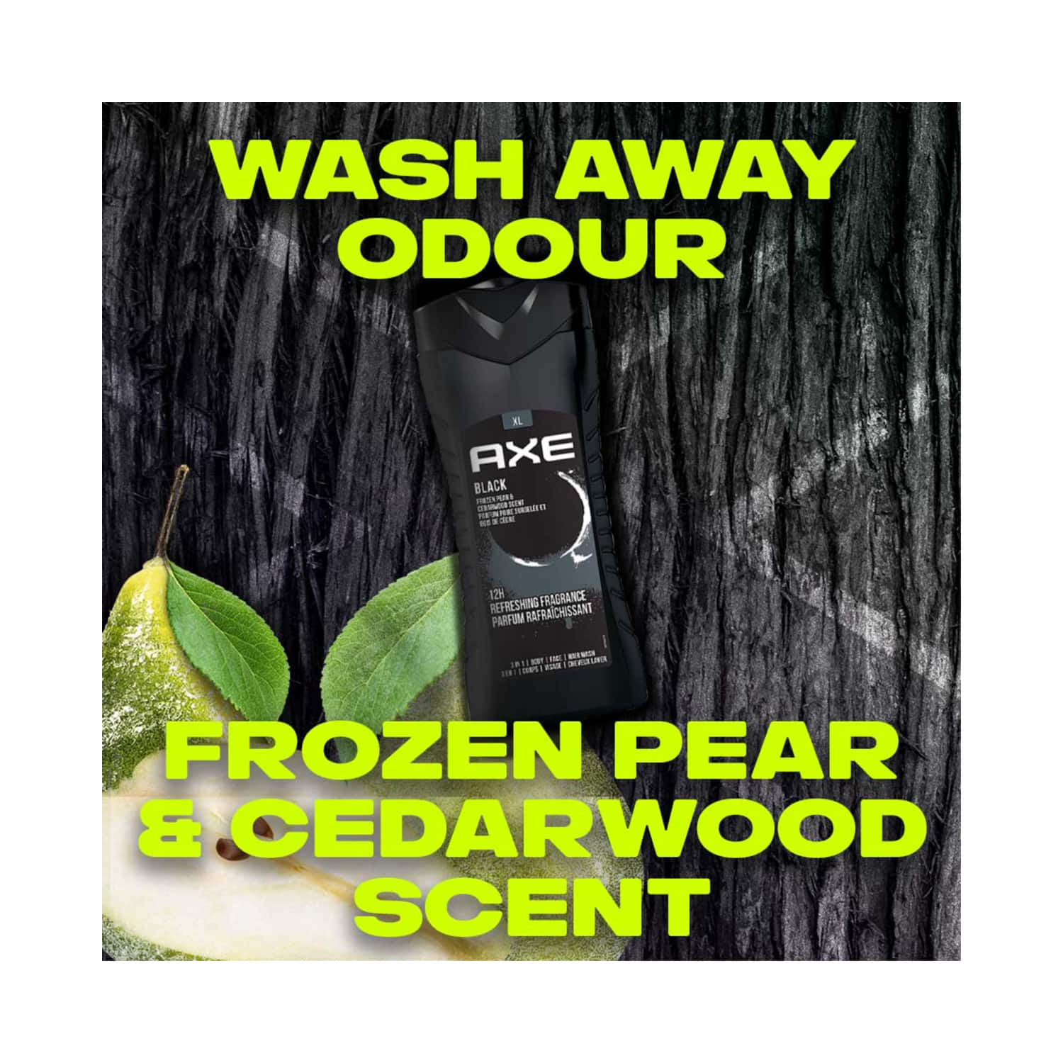 Let the Axe 3-In-1 Black Body Face & Hair Wash (400ml) help your look and feel your best every day. This all-in-one moisturizing body, face, and hair wash will leave your skin and hair feeling soft while improving overall health. Plus, this Axe men's shower gel, formulated with 100% plant-based prebiotics and 87% natural ingredients, helps the skin retain its natural moisture while scrubbing away dirt, impurities, odor, and bacteria. Key Features & Benefits:Created with 100% plant-based prebiotics and 87% natural ingredients to help the skin retain its natural moistureDeeply nourishes the skin and hair to restore their healthFeatures a long-lasting frozen pear and cedarwood scent to make you smell fresh for up to 12 hoursFree from parabens and dermatologically tested formula for safe use All Ingredients:Water (Aqua), Sodium Laureth Sulfate, Glycerin, Cocamidopropyl Betaine, Sodium Chloride, Fragrance (Perfume), Sodium Benzoate, Citric Acid, Ppg-9, Lactic Acid, Disodium Edta, Saccharide Isomerate, Sodium Sulfate, Sodium Citrate, Alpha-Isomethyl Ionone, Benzyl Salicylate, Limonene, Linalool, Ci 19140, Ci 42090. How to Use:To start, pour the body wash on a wet loofah or your palms. After that, squeeze the loofah to create a lather and massage it on your damp skin. Then, apply it to your hair and work into a lather. Rinse off the body wash with water and towel dry to get soft and fragrant skin. About the Brand:Established in France in 1983, Axe is a men's grooming brand under Unilever that creates high-quality yet affordable products like body sprays, deodorants, body washes, shampoos, hair styling products, and more. The brand is now used by men in over 90 countries, from America to Asia. Their mission is to help every man break away from stereotypes and embrace their unique style. Axe aims to empower men and help them express and enhance their individuality by giving them the tools to stay well-groomed and feel confident.Check out more AXE Shower Gels & Body Wash options here, or browse through tokocart's full range of Shower Gels & Body Wash from top global brands.You can also explore other products from the world of AXE here on tokocart.