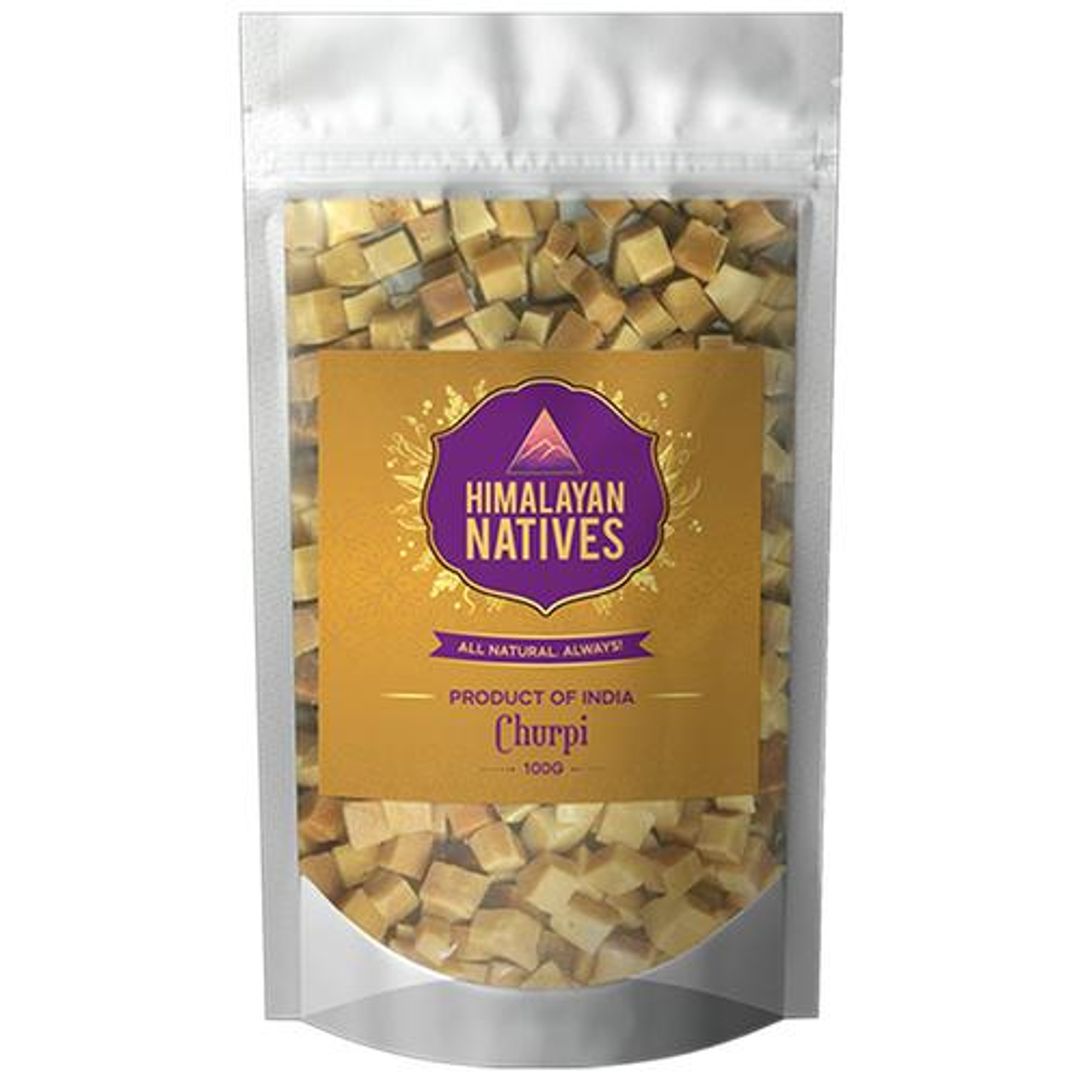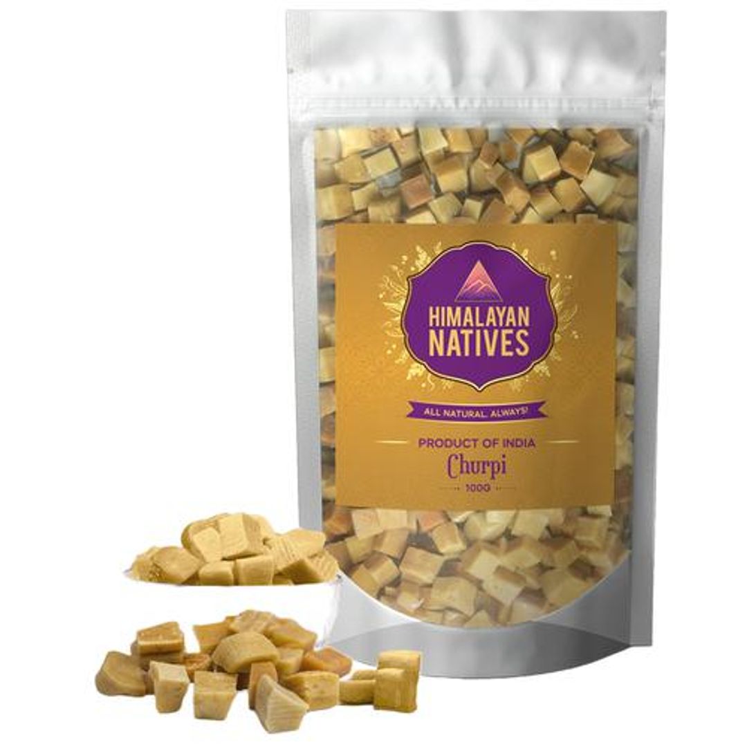 Himalayan Natives 100% Natural Churpi is made using the traditional and age-old Himalayan recipe that has been passed on to generations for centuries. The milk is boiled and then hung in a muslin cloth to drain the excess water. It is then further put in jute bags and pressed hard to get the chewable churpi cheese. Churpi as snacks is healthy and highly nutritious given its high content percentage of protein, Omega 3 fatty acids, and antioxidants. Churpi as snacks is healthy and highly nutritious given its high content percentage of protein, Omega 3 fatty acids, and antioxidants. Churpi cheese is also a rich source of calcium, phosphorus, magnesium, zinc, vitamin A, D, E, and all the B vitamins! Churpi, much like the Italian ricotta, is also made from whey. It is soft, white, and neutral in taste.