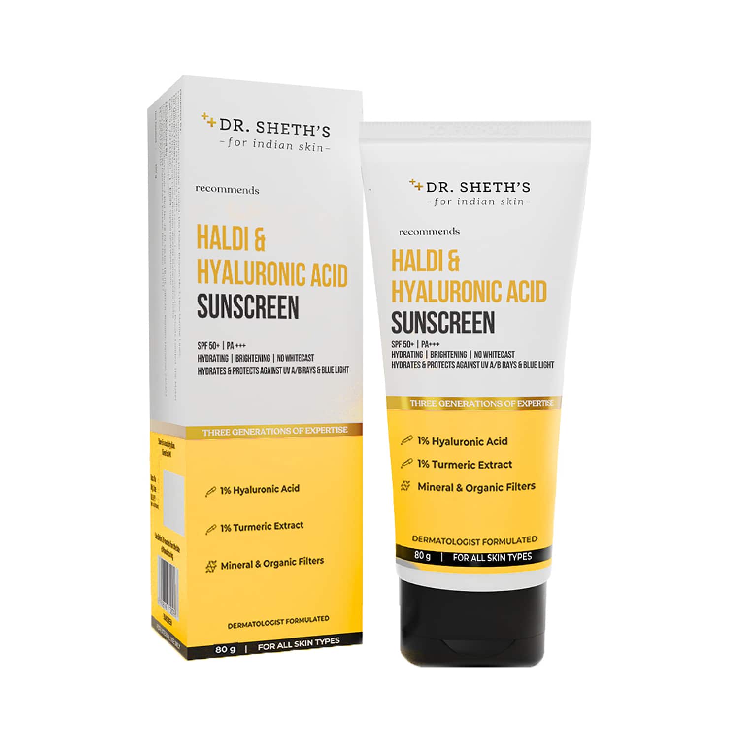 Dr. Sheth's Haldi & Hyaluronic Acid Sunscreen 50+ PA+++ (80g)