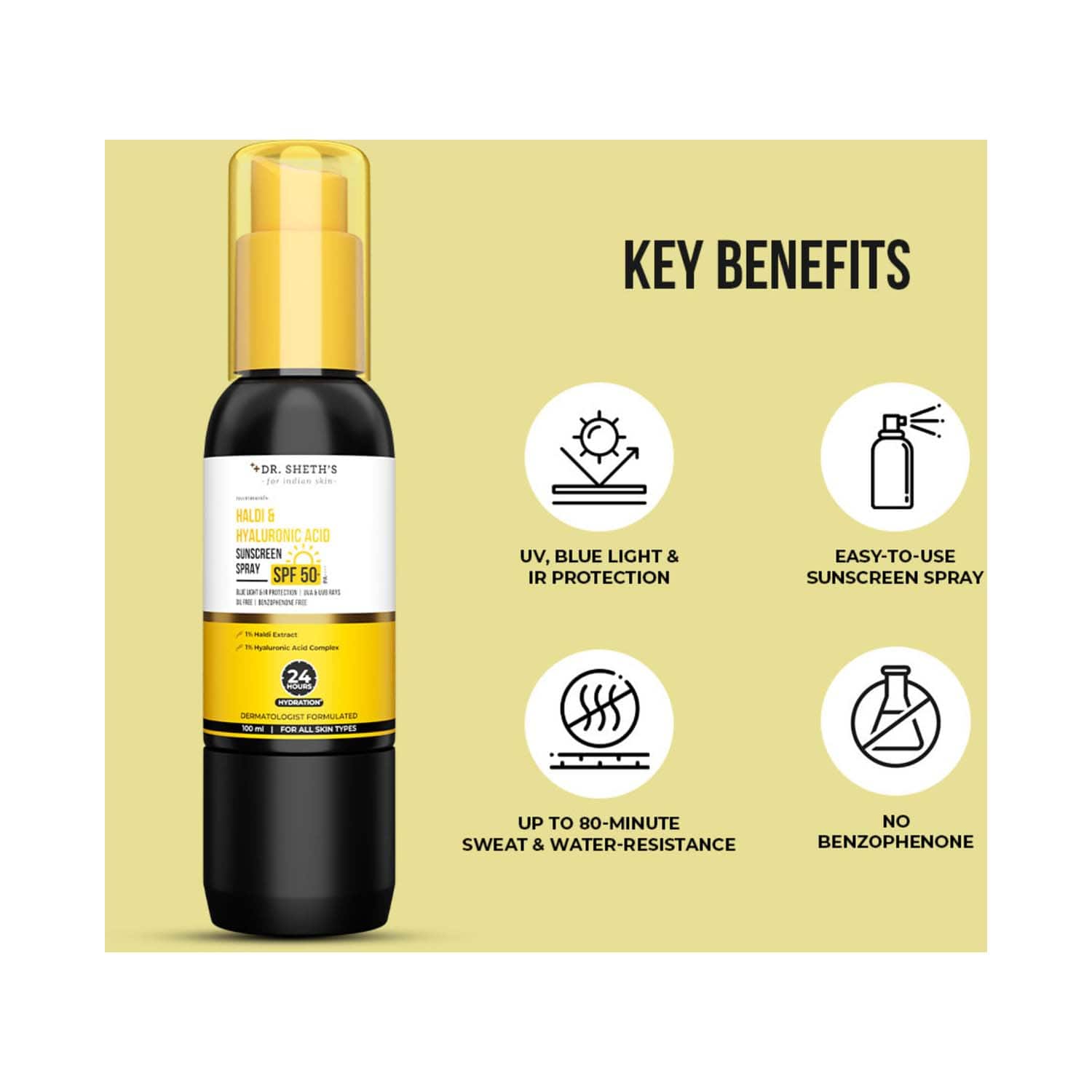 Dr. Sheth's Haldi & Hyaluronic Acid Sunscreen Spray With SPF 50+ PA+++ (50 g)