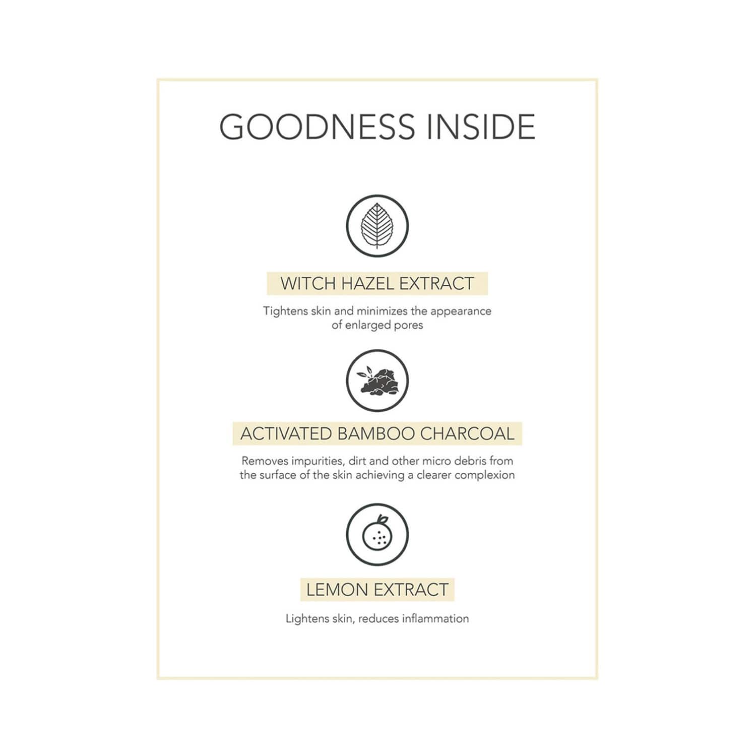 Key Ingredients:Bamboo charcoal: Detoxifies and cleanses deeplyWitch hazel: Tightens skin, reduces the appearance of poresLemon extracts: Lightens skin, reduces inflammation