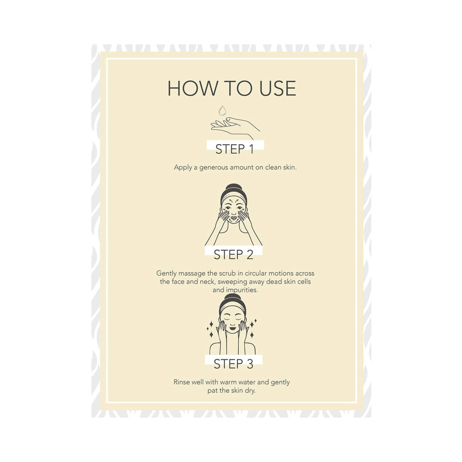 How to Use:Apply the scrub to your clean and wet face, avoiding the eye area. Using your clean fingertips, gently exfoliate in a circular motion for up to a minute. Rinse thoroughly with clean water and pat dry. Follow up with a moisturizer. Use it once or twice a week for effective results.