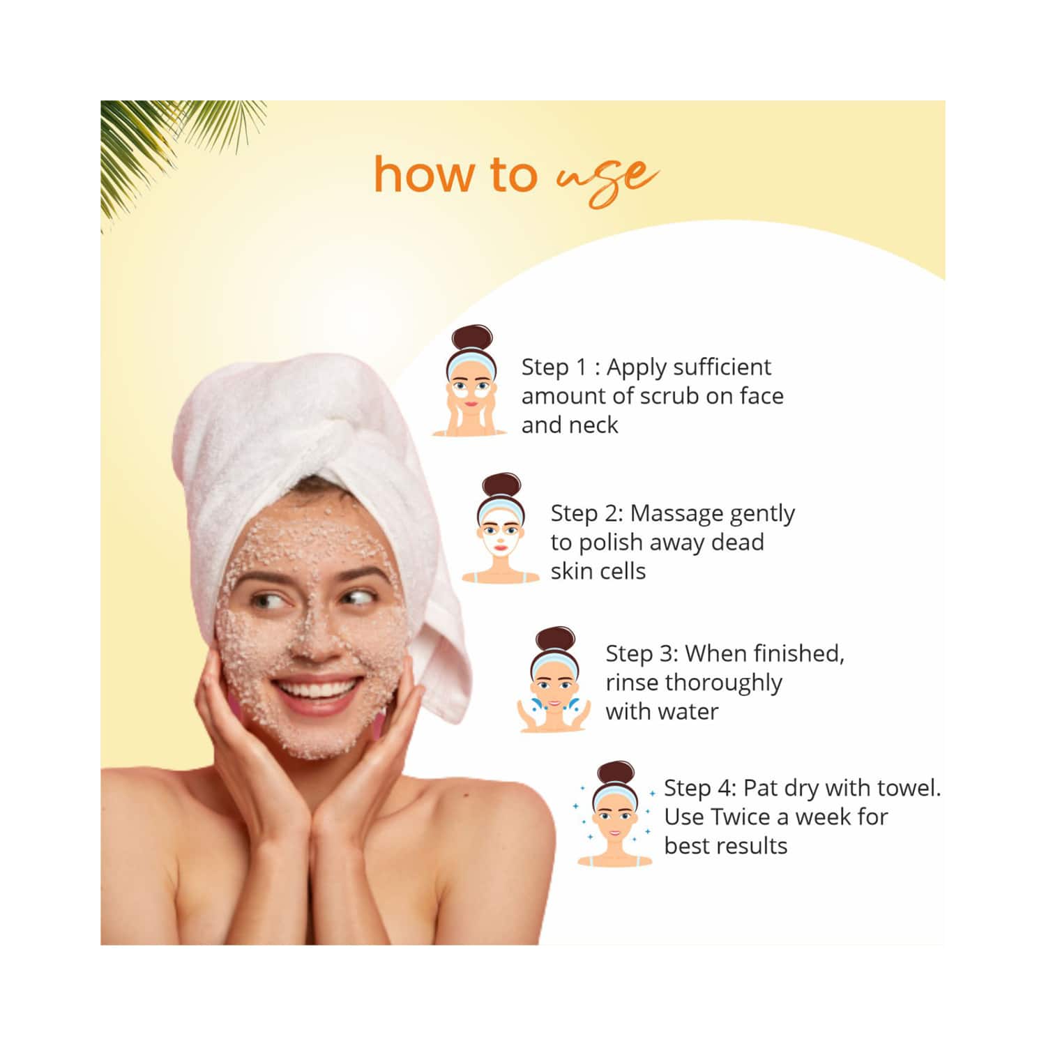 How to Use:Scoop a pea-sized amount of scrub and apply it on wet skin. Exfoliate gently in a circular motion with upward and outward strokes. Continue for 5 minutes. Rinse with cold water or wipe off with a damp towel.