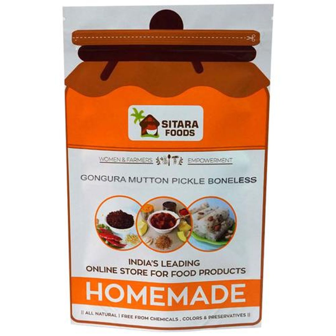Buy a tasty and healthy gongura pickle by Sitara Foods and bring home the authentic relish of sorrel leaf for every meal. Every jar of gongura pickles is made from the best quality sorrel leaves and pickled in fresh hand-ground spices. Plus, gongura is rich in iron, Vit A, folic acid, thiamine Vit C, calcium and phosphorous. Other ingredients like garlic and fenugreek also add to the taste as well as the list of health benefits. Enjoy a wide range of Sitara Foods' authentic Indian pickles, sweets, desserts, papads, snacks, and more, all available on Big Basket.