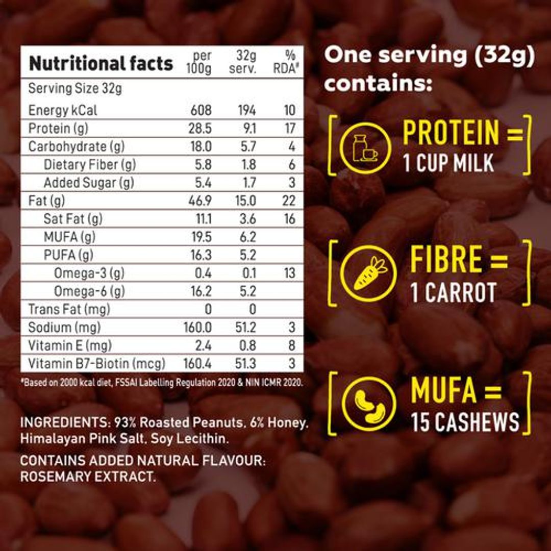 Roasted Peanuts 93%, Honey 6%, Himalayan Pink Salt, Soy Lecithin.