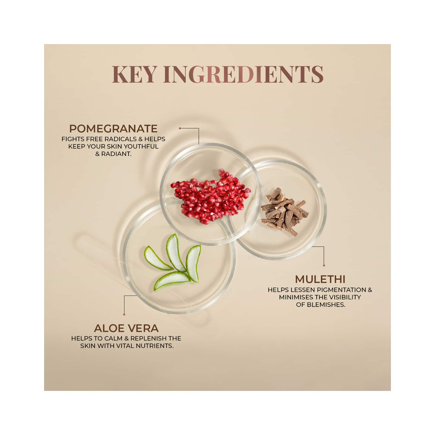 Key Ingredients:Pomegranate: Fights free radical damageAloe vera: Hydrates the skin