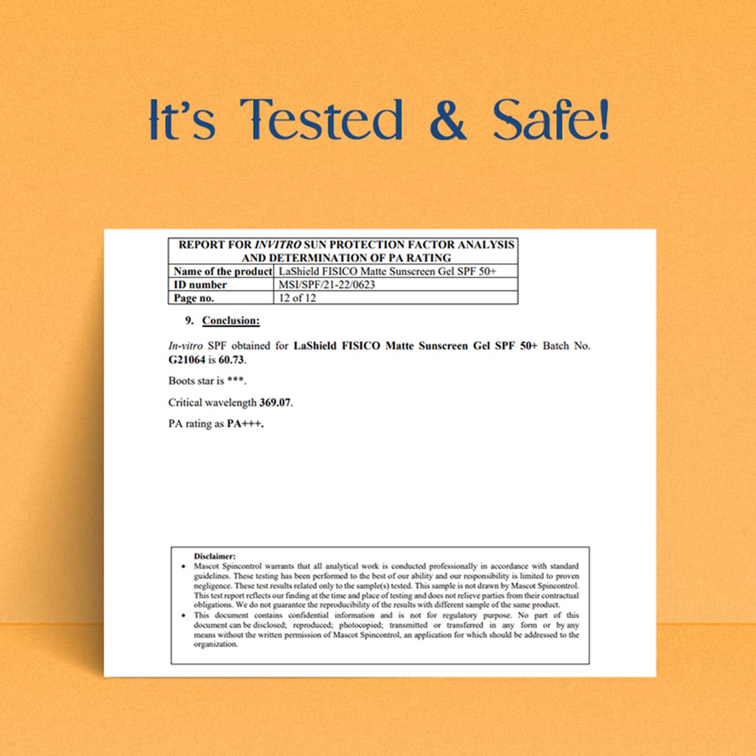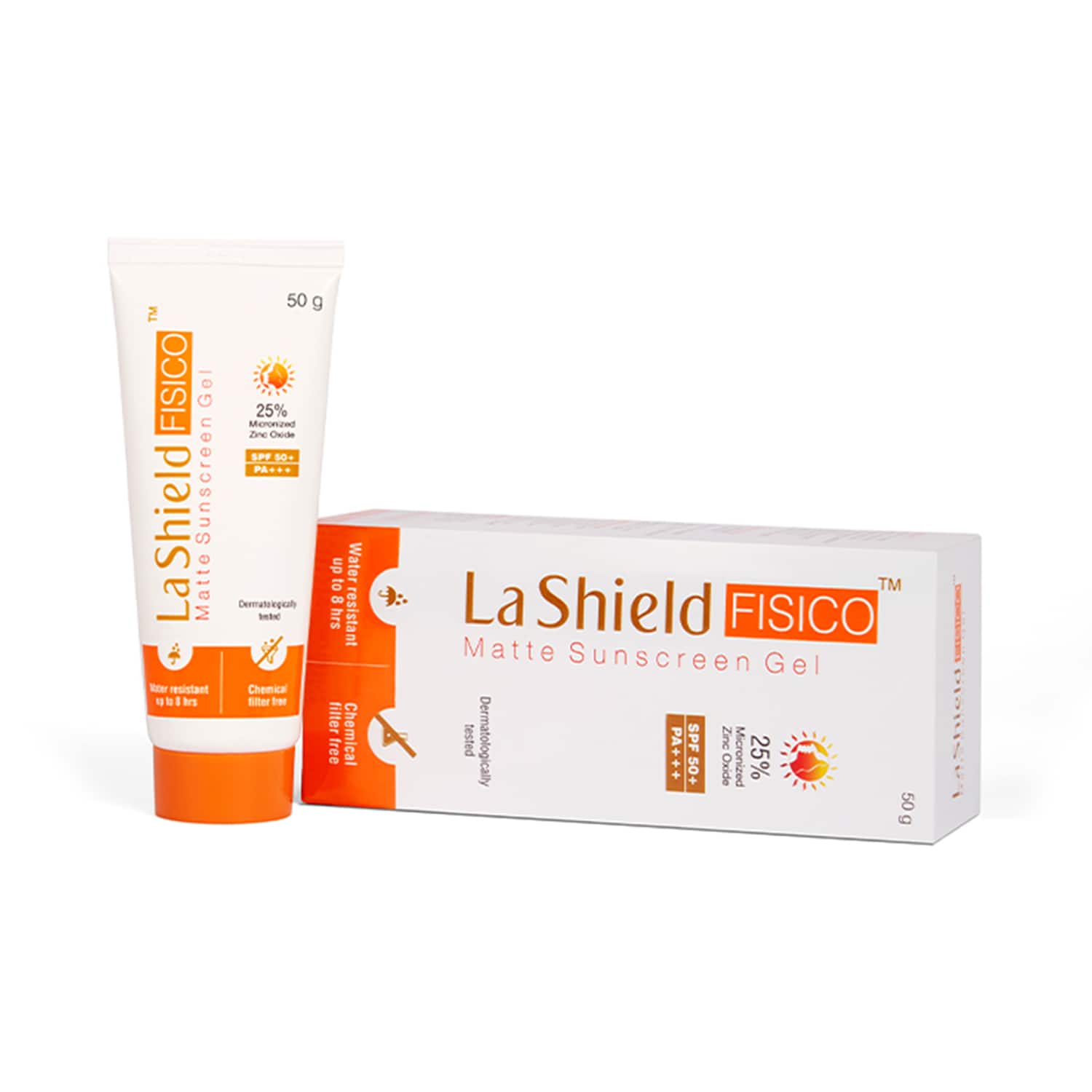 Give your skin protection with the La Shield FISICO SPF 50+ & PA+++ Sunscreen Gel (50g). It helps to shield your skin from harmful UV rays by deflecting them. This La Shield sunscreen has a lightweight formula that ensures comfortable application and offers a matte finish. The waterproof sunscreen stays for long hours without wearing out. Also, this paraben-free sunscreen is made free of harmful chemicals for safe use on your skin.Key Features & Benefits:Protects your skin by deflecting harmful UV raysLightweight formula that offers easy application with a matte finish on your skinResistant to sweat and stays intact for long hoursParaben-free formulation for safe useHow to Use:Take a little bit of sunscreen on your hand. Dab it over your face and neck in a circular motion for easy absorption of the gel. If you apply makeup later, ensure that you wait five minutes after applying the gel for better absorption.All Ingredients:Purified Water, Superfine Zinc Oxide,