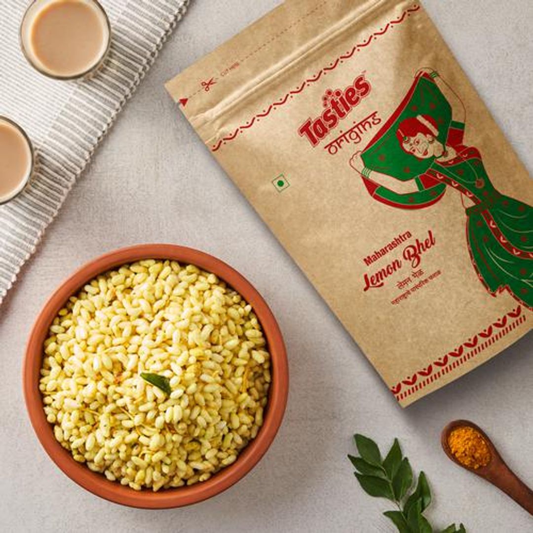 About the ProductCrispy and blended to perfection with the tanginess of lemons, Namkeen Lemon Bhel - Crispy is the savoury treat you need to satisfy your immediate hunger cravings and is the ideal munchie to snack on everywhere. Made with fresh and traditional Maharashtrian spices, our snacky treats are deliciously savoury and are of supreme quality. Served with a hot cup of masala chai or coffee, the Namkeen Lemon Bhel - Crispy is packaged to serve you hygienic, healthy, and aromatic snacks on the go. Made with fresh puffed rice, palmolein, gram flour and fresh turmeric powder, our treat is authentic, crispy, and mouth-watering. Our Masala Corn Chivda is a long traditional recipe in Maharashtra and is the most delectable snack that you can get your hands on. Be assured that our snack is prepared well and has no added cholesterol and preservatives, so that you can enjoy them at your convenience. Packed with flavour, our Namkeen Lemon Bhel - Crispy has no trans-fat and added colour and is the best snack to have in your pantry. Indulge in savour goodness with our Maharashtra Namkeen Lemon Bhel - Crispy now! Experiment with the eclectic range of Tasties Origin's Namkeen collections on Big Basket from Lahsun Sev, Indori Mixture, and more, where tradition meets flavour in local recipes.