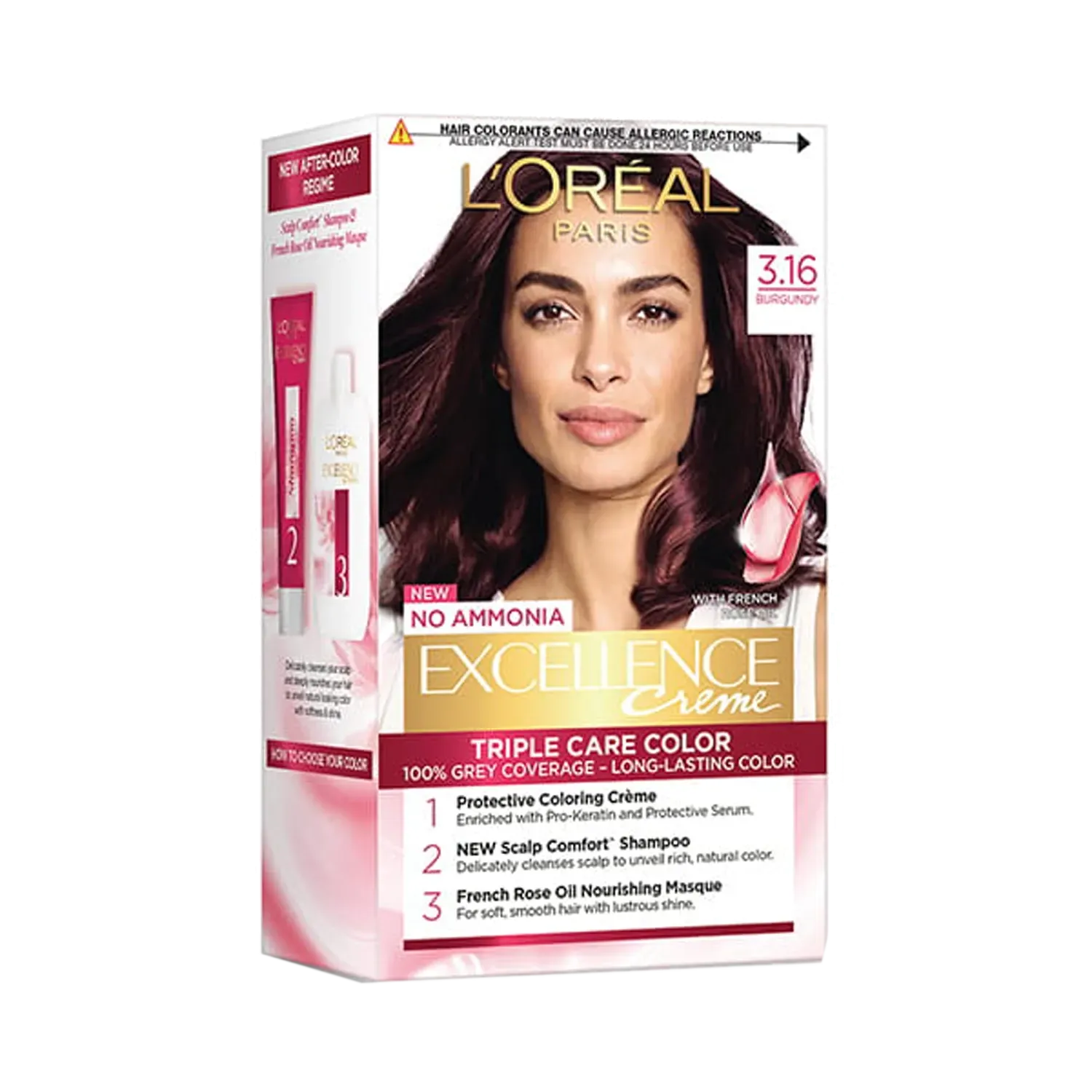 L'Oreal Paris Excellence Creme Hair Color, 3.16 Burgundy, 72ml+100g
