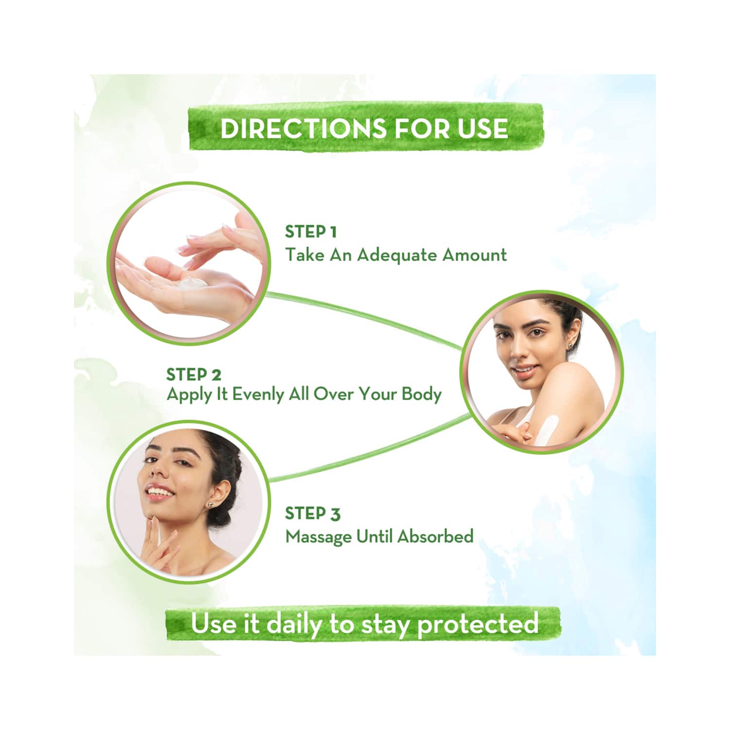 How to Use:Take a little bit of sunscreen body lotion on your hand. Dab it over your face and neck in a circular motion for easy absorption of the cream.