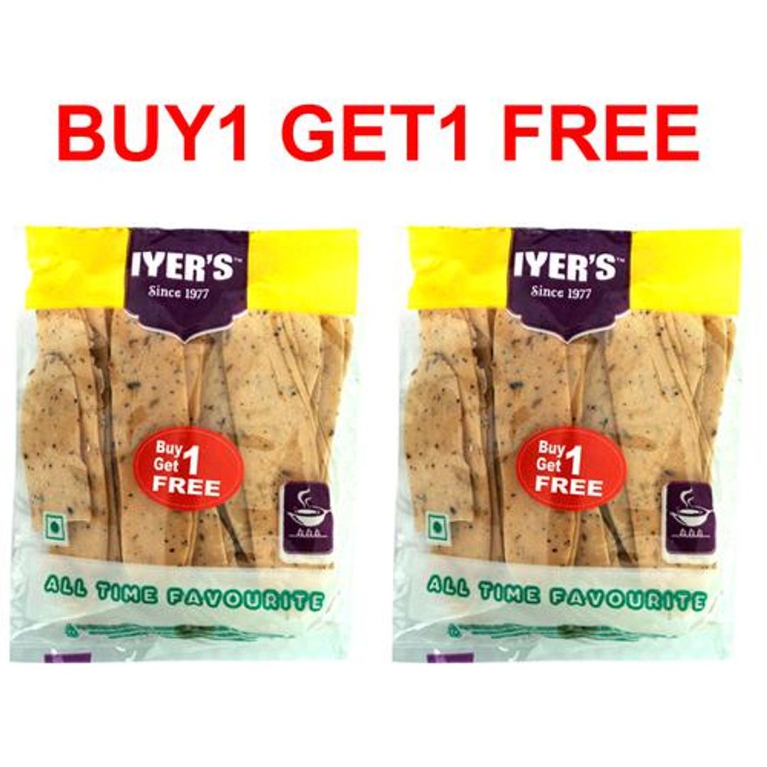 Iyers Masala Papad Long Chips set in the mood for a delicious dinner or lunch. It is crispy, easy to munch, smooth and hence makes it a nice snack to nibble.