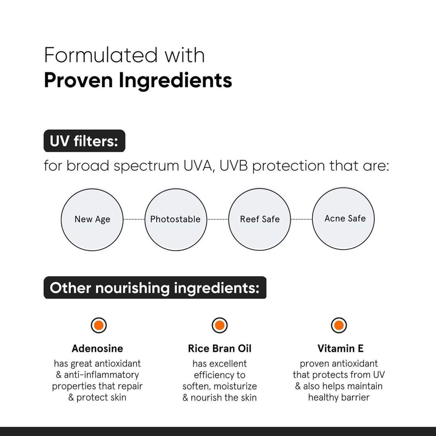 Key Features & Benefits:Lightweight formula does not leave behind any white castSPF 50 PA++++ formula offers protection against UVA and UVB raysLightweight formula leaves no white cast behindNon-comedogenic and free from fragrance to ensure safe use