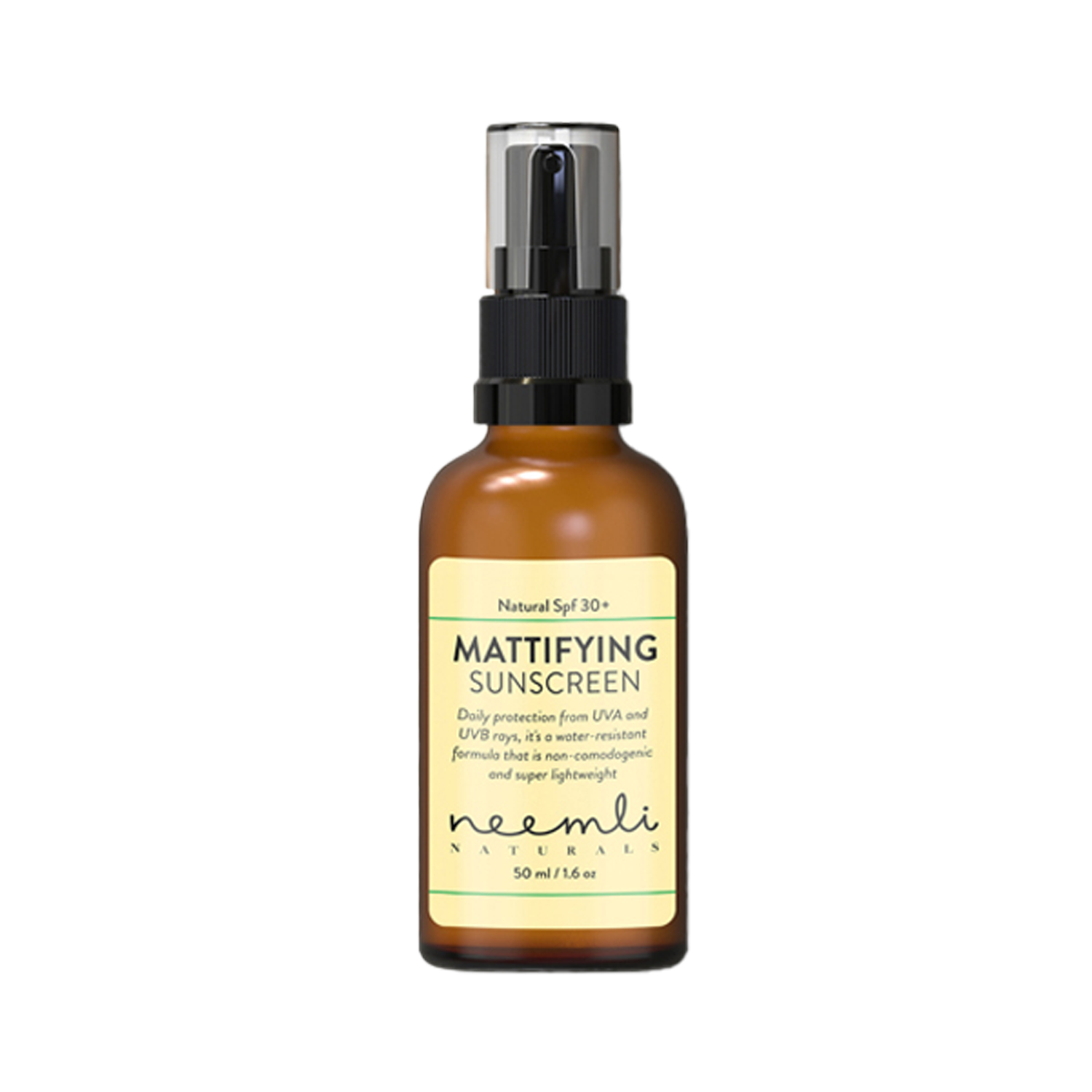 Fight sun damage with the Neemli Naturals Natural Mattifying Sunscreen - SPF30 (50ml). This non-greasy sunscreen is safe and comfortable to use daily, even on sensitive skin. The water-resistant sunscreen controls oil production for a matte finish while offering broad-spectrum protection from harsh UVA and UVB rays, so your skin stays safe in the sun.Key Features & Benefits:Non-greasy formula is safe and comfortable to use daily for sensitive skinWater-resistant matte sunscreen controls oil productionSPF30+ offers broad-spectrum protection from UVA and UVB raysSpray-on sunscreen is easy to use and carryKey Ingredients:Hyaluronic acid: Moisturizes skinAloe vera extract: Prevents skin damageFenugreek seed extract: Promotes skin healing and lightens blemishesLicorice extract: Soothes skin and blocks melanin productionHow to Use:Apply 20 minutes before sun exposure. Shake the bottle and generously apply from forehead to neck. Reapply every 60 to 90 minutes. Use daily for the best results.All Ingredients:Dm Aqua, Glycolic Acid, Cocamidopropyl Betaine, Glycerine, Sorbitol, Aloe Barbadensis (Aloe) Leaf Juice, Apple Cider Vinegar, Aquaxyl, Peppermint Oil, Hyaluronic Acid, Niacinamide, Sodium Levulinate And Potassium Sorbate, Phenoxyethanol, Turmeric Oil, Echinacea Extract, Potassium Azeloyl DiglycinateAbout the Brand:Neemli Naturals is a homegrown skincare startup headquartered in Bandra, Mumbai, with superior quality products made in small artisanal batches. The brand uses sustainable, environmental-friendly, safe, and effective natural ingredients to curate its exceptional skincare line. Committed to delivering toxin-free skincare for everyone, Neemli Naturals makes skincare that gives immediate results yet has long-term benefits. Their premium, organic, and cruelty-free products are devoid of synthetic ingredients, parabens, sodium lauryl sulfate, phthalates, chemicals, fillers, animal testing, mineral oils, petroleum, and animal-based ingredients.
