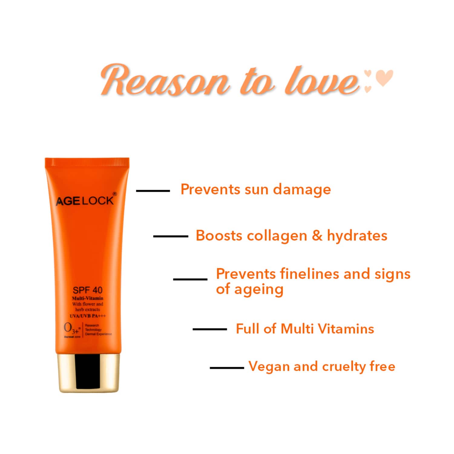 O3+ Agelock Multivitamin Sunscreen SPF 40 UVA/UVB PA+++ (75g)