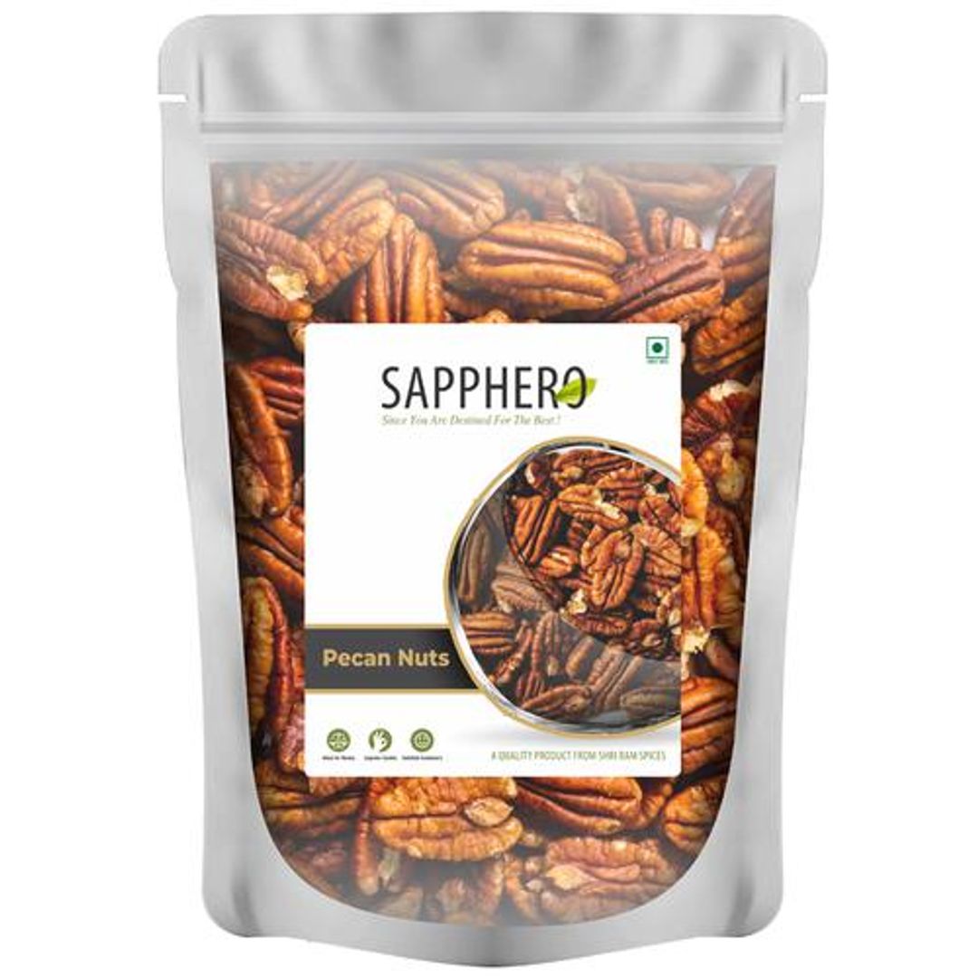 Sapphero Pecan Nuts, because you deserve nothing but nature’s best offering. Pecan Nuts are loaded with essential nutrients and can be an amazing addition to your daily diet. They add necessary fiber, copper, thiamine and zinc which help in heart health and brain function.
