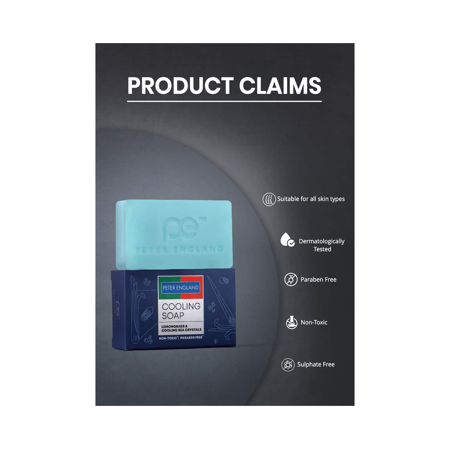 For a revitalizing bathing experience, use the Peter England Cooling Soap - (3 Pcs). This cooling bath soap is infused with sea crystals and lemongrass oil to reduce irritation and redness, while effectively removing dead skin, cleansing pores, and preventing blackheads. Also, this Peter England bathing soap has a non-toxic formula, suitable for all skin types. Key Features & Benefits:Enriched with sea crystals and lemongrass oil for a cooling sensation and deep hydration in your skinNon-toxic formula ensures a gentle and safe cleansing processReduces irritation and redness for sensitive skin typeFree of silicone and paraben for safe use Key Ingredients:Cooling sea crystals: Have soothing propertiesLemongrass oil: Cleanses the skin All Ingredients:Soap Noodles, Purified Water, Perfume, Glycerine, Coconut Oil, Lemongrass Oil, Menthol, Titanium Dioxide, Tetrasodium Etidronate, Sodiumchloride, Propylene Glycol.Tfm: 76% (Grade 1) How to Use:Dampen your skin. Then use water to wet the soap and rub it gently over your body. Shortly after, rinse it off with water and towel dry your body to get fresh and scented skin. About the Brand:Peter England was established in 1890 as a traditional British shirt maker. In its early years, the brand became a major supplier to the British Military. During the late 1950s and 1960s, various acquisitions and mergers facilitated the brand's expansion. Today, the brand has undergone notable transformations and is now divided between two owners: the M2C2 Group in the UK and the Aditya Birla Group in India. Peter England aims to provide a comprehensive range of products, including exceptional shirts, fragrances, and excellent customer service.Check out more Peter England Soaps options here, or browse through tokocart's full range of Soaps from top global brands.You can also explore other products from the world of Peter England here on tokocart.