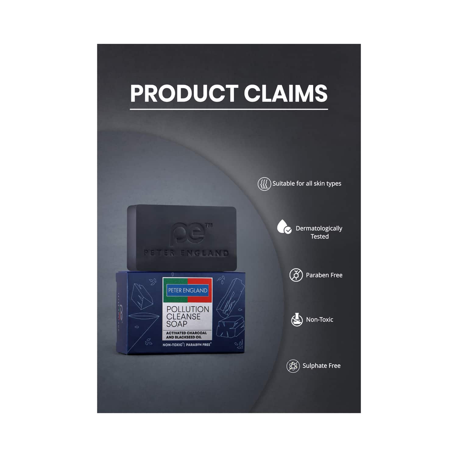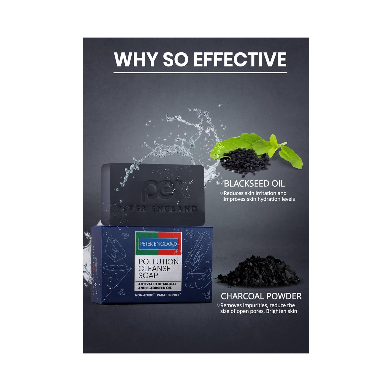 Achieve spot-free and clear skin with the Peter England Pollution Cleanse Soap - (3 Pcs). This anti-pollution bath soap is infused with activated charcoal extract to deep cleanse your pores, effectively remove dead cells, and prevent blackheads. Also, this Peter England bathing soap has a non-toxic formula, suitable for all skin types. Key Features & Benefits:Pack of 3 bathing soapsEnriched with activated charcoal extract to deeply cleanse your skinNon-toxic formula ensures a gentle and safe cleansing processFree of silicone and paraben for safe use Key Ingredients:Activated charcoal extract: Detoxifies the skin All Ingredients:Soap Noodles, Purified Water, Perfume, Glycerine, Coconut Oil, Activated Charcoal Powder, Titanium Dioxide, Tetrasodium Etidronate, Sodium Chloride, Propyleneglycol, Nigella Sativa Seed Oil.Tfm: 76% (Grade 1) Soap How to Use:Dampen your skin. Then use water to wet the soap and rub it gently over your body. Shortly after, rinse it off with water and towel dry your body to get fresh and scented skin. About the Brand:Peter England was established in 1890 as a traditional British shirt maker. In its early years, the brand became a major supplier to the British Military. During the late 1950s and 1960s, various acquisitions and mergers facilitated the brand's expansion. Today, the brand has undergone notable transformations and is now divided between two owners: the M2C2 Group in the UK and the Aditya Birla Group in India. Peter England aims to provide a comprehensive range of products, including exceptional shirts, fragrances, and excellent customer service.Check out more Peter England Soaps options here, or browse through tokocart's full range of Soaps from top global brands.You can also explore other products from the world of Peter England here on tokocart.