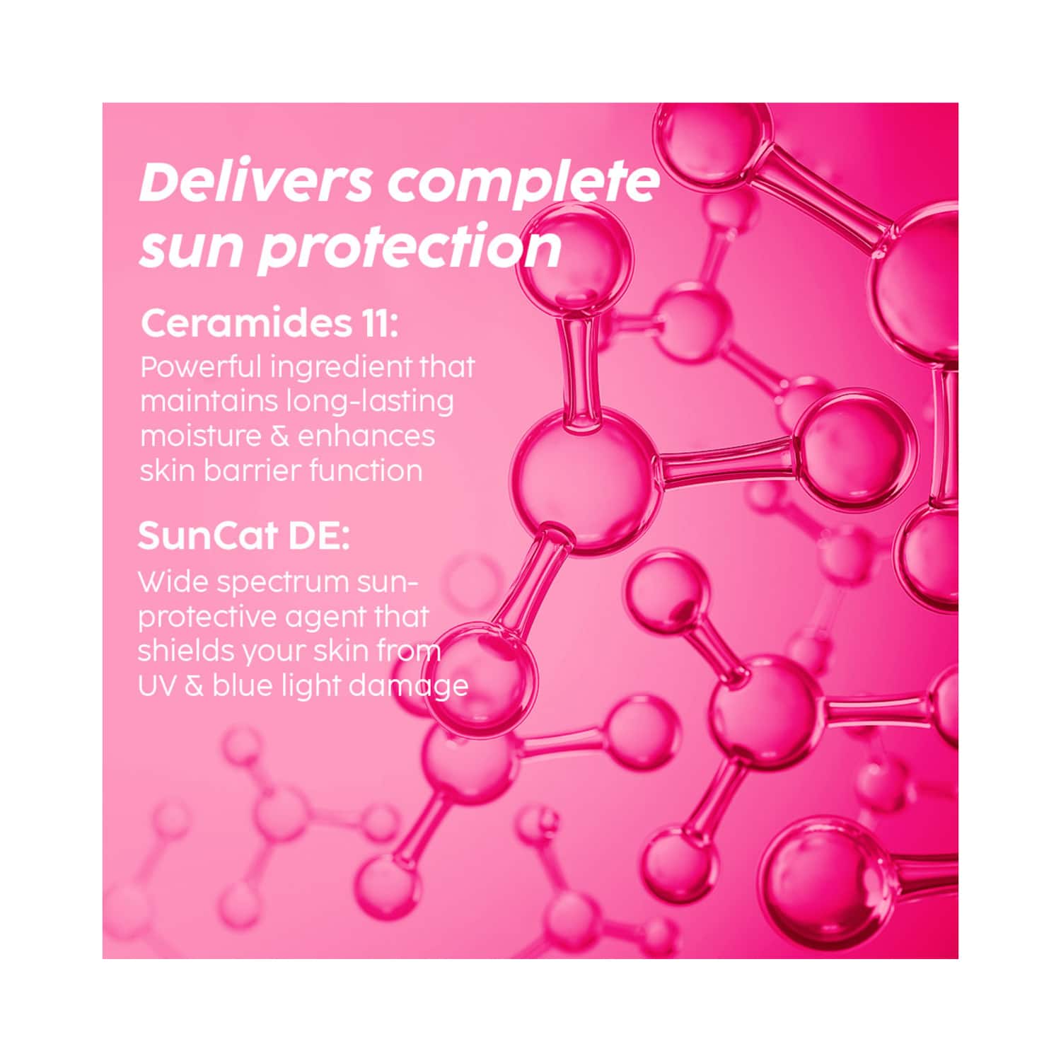 Safeguard your skin with the Plix The Plant Fix Guava Glow Invisible Sunscreen Gel SPF 50+ (50g). This lightweight sun protection cream has SPF 50 to provide broad-spectrum protection against UVA, UVB, and blue light. Also, the feather-light texture of this Plix The Plant Fix sunscreen does not leave behind any oily residue or white cast and is totally invisible on the skin. Plus, it brightens and even the skin tone while keeping it hydrated for up to 72 hours. Key Features & Benefits:Provides broad-spectrum SPF 50 protection against UVA, UVB, and blue lightInfused with vitamin C to boost collagen production and brighten the skin toneOffers up to 72 hours of hydrationAbsorbs quickly and does not leave behind any oily residue or white cast Key Ingredients:Ceramide 11: Hydrates the skinSunCat DE: Protects the skin from photodamageVitamin C: Boosts collagen production and brightens the skin toneGuava extract: Removes impurities from the skin All Ingredients:Aqua, Ethylhexyl Methoxycinnamate, Butyl Methoxydibenzoylmethane, Benzophenone-3, Phospholipids, 1, 3-Butylene Glycol (Suncat De Tm), Psidium Guajava (Guava) Leaf Extract, Propanediol, Aluminum Starch Octenylsuccinate, Sodium Acrylates Copolymer, Lecithin, Zinc Oxide, Caprylic/Capric Triglyceride, Polyhydroxystearic Acid, Sodium Hyaluronate, Ceramide Np, Ceramide Ap, Ceramide Eop, Phytosphingosine, Cholesterol, Sodium Lauroyl Lactylate, Carbomer, Xanthan Gum (Sk-Influx® V Mb), Saccharide Isomerate, Citric Acid, Sodium Citrate, Tocopheryl Acetate, Tocopherol, Helianthus Annuus (Sunflower) Seed Oil, 3-O-Ethyl Ascorbic Acid, Phenoxyethanol, Ethylhexylglycerin, Aroma, Ci No. 42090. How to Use:Take an adequate amount of sunscreen on your palm. Dab it over your face and neck and massage it in a circular motion until absorbed completely. About the Brand:Plix is ??the best brand of all-natural, 100% vegan products. Plix - Plant Fix, obtained from nature and created by experts, is a certified clean brand with premium vegan ingredients that do not contain sulfates, parabens, or other harmful substances. Their experts have created the formula with the strongest ingredients. The brand was founded with the vision to change how the world consumes the best food products. Their goal is to make health a happy lifestyle for everyone.