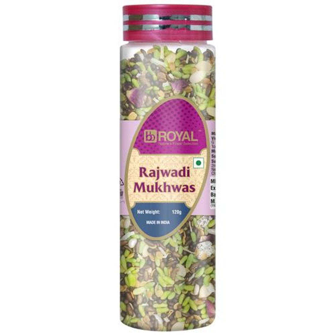 Rajwadi Mukhwas is a crunchy, sweet and yummy mouth freshener that has fennel seeds coated with sugar, dry dates, rose petals. It aids in better digestion and gives a refreshing taste. It’s used post-meal as a mouth freshener.