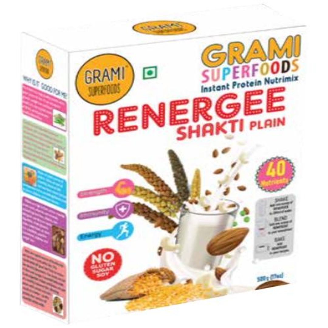 The Grami Superfood G25 Renergee Instant Nutrimix Shakti Plan is wonderful to fulfil your daily nutritional requirements. The G25 Renergee Instant Nutrimix Shakti Plan is curated by mixing different millets and other micronutrients to fulfil your daily nutritional requirements. This Nutrimix is great to have on days when you've skipped your meal but want to stay ahead with nutrition. The ingredients like millets, nuts, and dry fruits used in this shakti plan are roasted well to enhance the health benefits. Explore the wide range of snacks and food supplements by Grami Superfood only on Big basket.