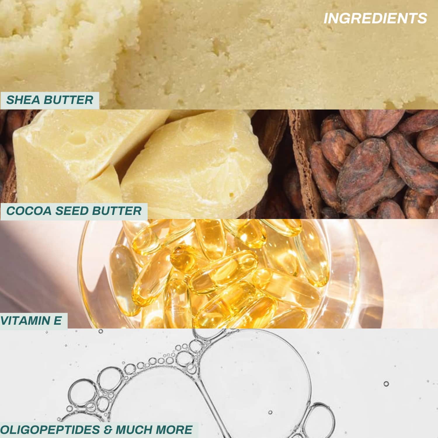 Key Ingredients:Shea butter: Nourishes and protects the skinVitamin E: Protects the skin from free radicals and improves skin elasticity and firmnessOligopeptides: Reduce the appearance of fine lines and wrinklesPolypeptides: Support the skin's natural repair processes, restore damaged skin and promotes faster healingAlpha-glucan oligosaccharide/bioecolia: Supports the skin’s natural microbiome