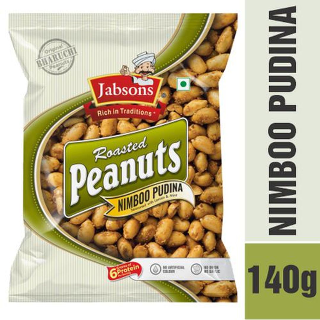 Roasted peanuts are roasted in the age-old hand roasting process of gujarat, this process gives natural sweetness, true roasted flavour & golden brown colour to the peanuts, mildly spiced, mouth watering roasted peanuts, seasoned with pudina leaves & lemon powder, these are indian spices known for their digestive properties, as per ayurveda.