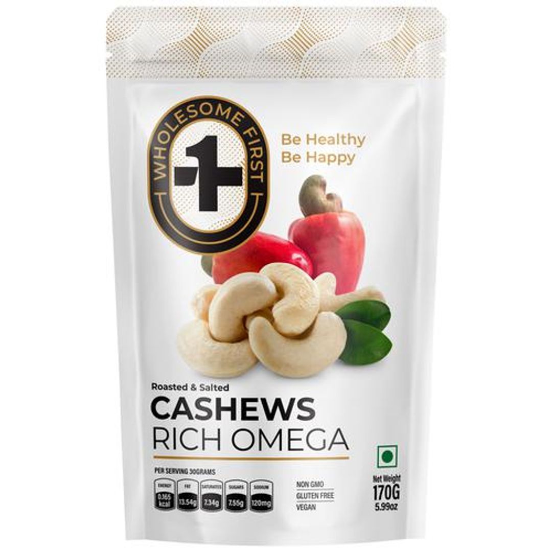 The Wholesome First Roasted & Salted Cashews have no GMO and are vegan. Cashew nuts are high in vital fatty acids, potassium, and antioxidants, all of which are good for your heart. It includes phytosterols, phenolic compounds, and oleic acid, which promotes heart health and strengthens blood vessels. Cashew nuts aid in the reduction of bad cholesterol (LDL) and the increase of good cholesterol (HDL) in the body. Enjoy these roasted and salted cashews with drinks, beverages and more.