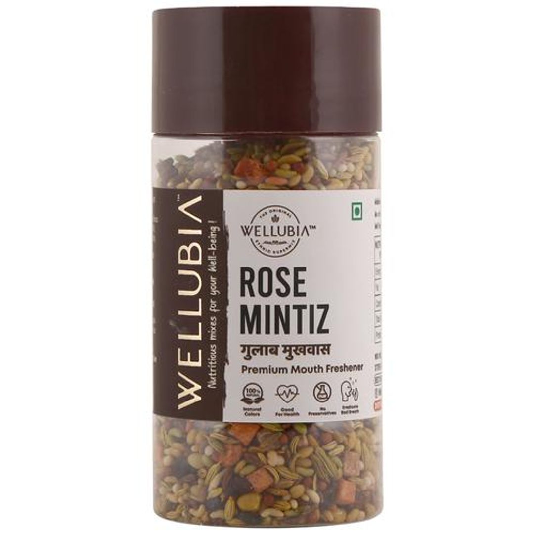 The Wellubia Rose Mintiz is the perfect after-meal digestive for a lunch with your peers. Exquisitely created with different types of seeds such as fennel, coriander, amaranth, sesame and Indian gooseberry. The mixture of seeds when mixed with dry dates, crystal fruit and natural rose flavours give the required freshness to your senses. Grab a spoonful after every meal and enjoy this delicious treat. Explore the wide range of flavoursome mouth fresheners by Wellubia only on BIg Basket.