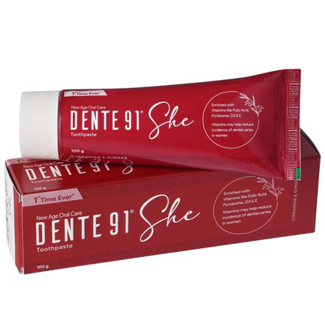 2. Dente91 SHE Toothpaste is the first-of-its-kind toothpaste in India specially created to protect as well as augment women’s oral health. It contains Folic acid (Vitamin B9), Vitamin B6, Vitamin E and Vitamin D3 which helps to support women’s oral health across her lifespan.