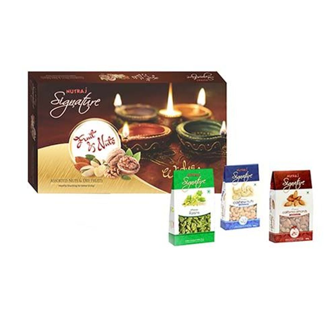 Nutraj Signature Wishes of 3 Nuts Gift Pack brings to you best selected high quality almonds, cashews and raisins.