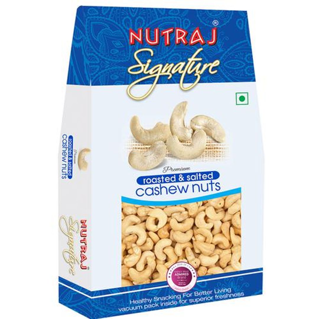 Those who love the goodness of dry fruits cannot resist this pack of Signature roasted and salted Premium cashew nuts from Nutraj. These cashew nuts are a healthy snacking option for a healthy living. This packet has been vacuum packed to retain freshness and crispiness of the nuts. These delicious and mouth-watering nuts are absolutely wholesome, nutritious and appetizing for the stomach. Hygienically packed, this packet demands to be in your snack basket.Nutraj is a pioneer name in the trade of healthy bites and offers the finest variety of nuts and dried fruits from around the world. Process, hygiene and quality are the major parameters which are laid major emphasis on under this label.