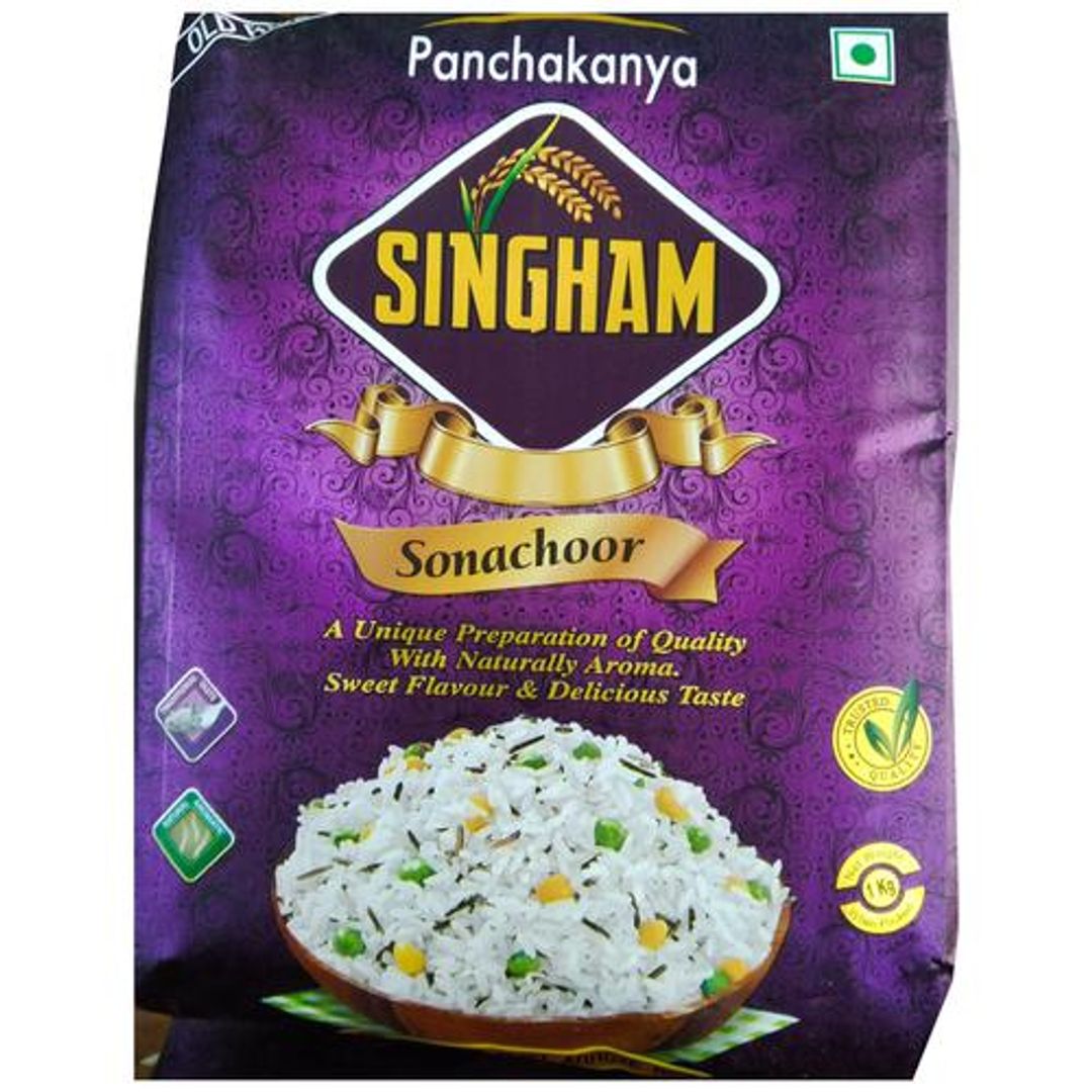 Panchkanya Singham Sonachoor Rice is perfect for everyday use and can be used to make a number of rice items like steamed rice, pulao, biryanis and more. Enjoy the goodness of Panchkanya Singham Sonachoor Rice with your family and friends. This is highly nutritious rice that tastes delicious and can be consumed on a daily basis. The long pearly white grains and their aroma is what make this rice special. Panchkanya Singham Sonachoor Rice is very easy to cook and gets prepared in very less time. Panchkanya Singham Sonachuoor Rice will add good nutritional values and amazing taste to your meal and makes your every meal memorable. Explore an entire range of Panchkanya rice products and many more only on Big Basket!